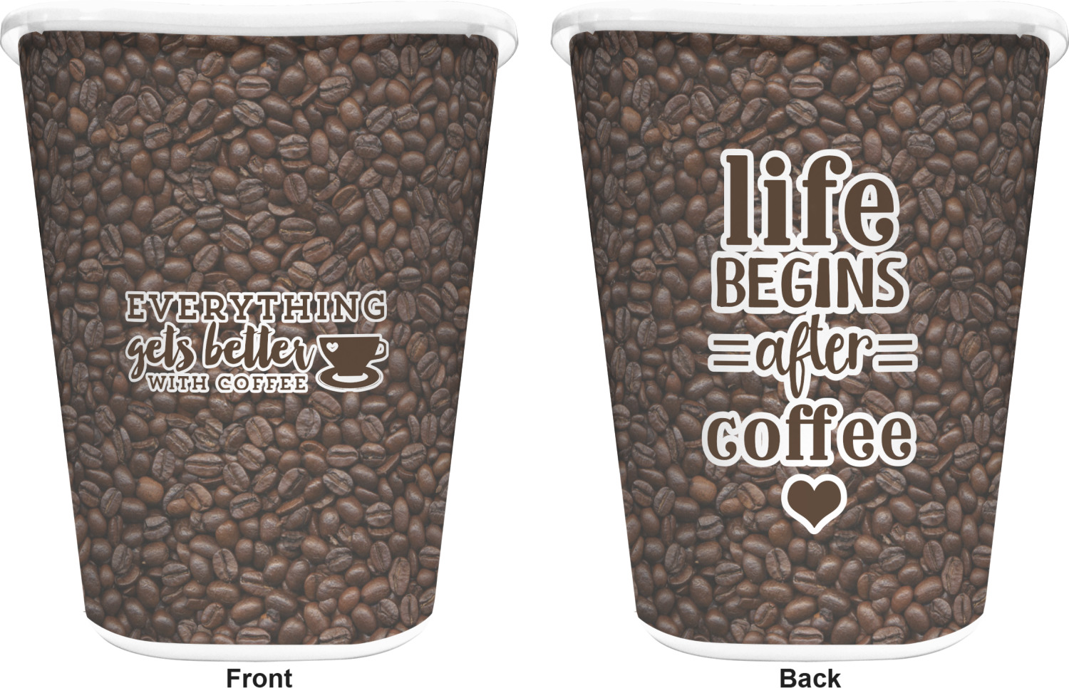 You can choose to purchase these decorative wastebaskets in either a white or a black color that will show on the base and the upper rim. Your customization is printed on a high-gloss, fine-quality vinyl adhesive, and you can choose to either have this adhesive applied to one side only or to both sides. As such, this plastic wastebasket can be single-sided or double-sided, depending on your creative vision. Your customization is printed using durable inks, making the design waterproof and resistant to fading over time.