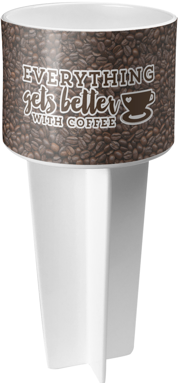 This cup holder has a large stake at its bottom that anchors it to the sand or ground below, while the cup holder rests above the stake. The entire drink holder is made of durable plastic and displays your customization around the cup holder portion. We sell these personalized beach spikers in two different colors: black and white.