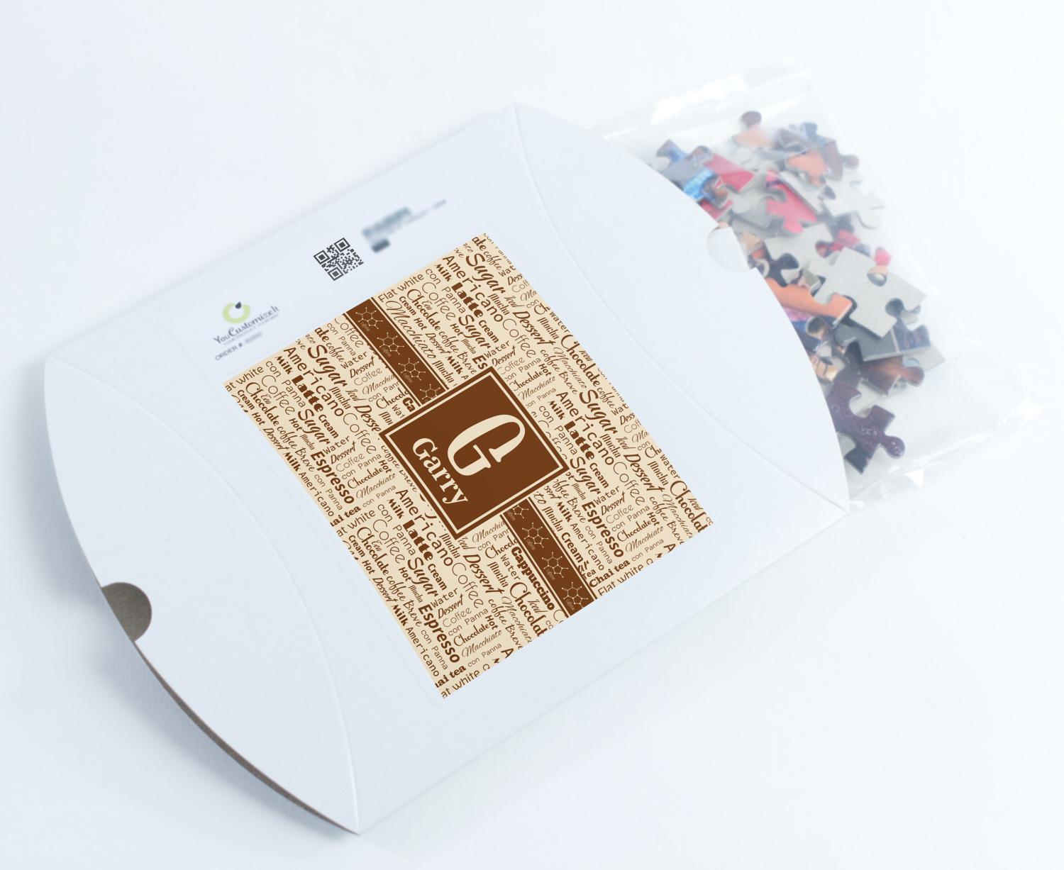 You can also upload your logo or art that you or your kids drew. To create more challenging jigsaw puzzles, you can create a pattern from with your logo or artwork. You can also add other elements such as text or personalization.