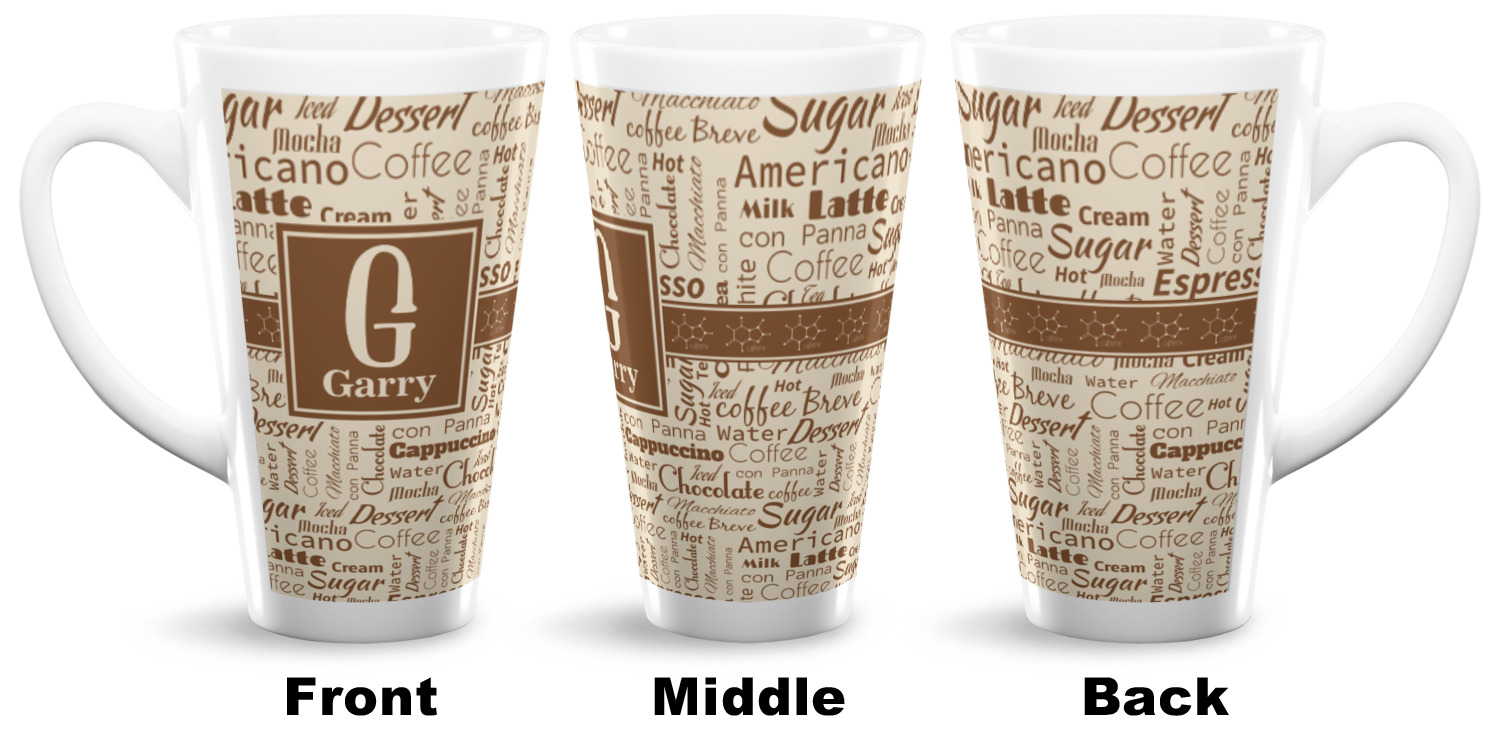 Choose from one of our two ceramic latte mug sizes. Our 12oz latte cups are great for a few shots of espresso or some tea before bed. The 16oz mug is a tall latte mug perfect to hold iced coffee or give you extra room to sip your favorite drink. We print your design with a glossy finish wrapping around the outside of the ceramic mug, so make sure your design is displayed to your ideal vision!