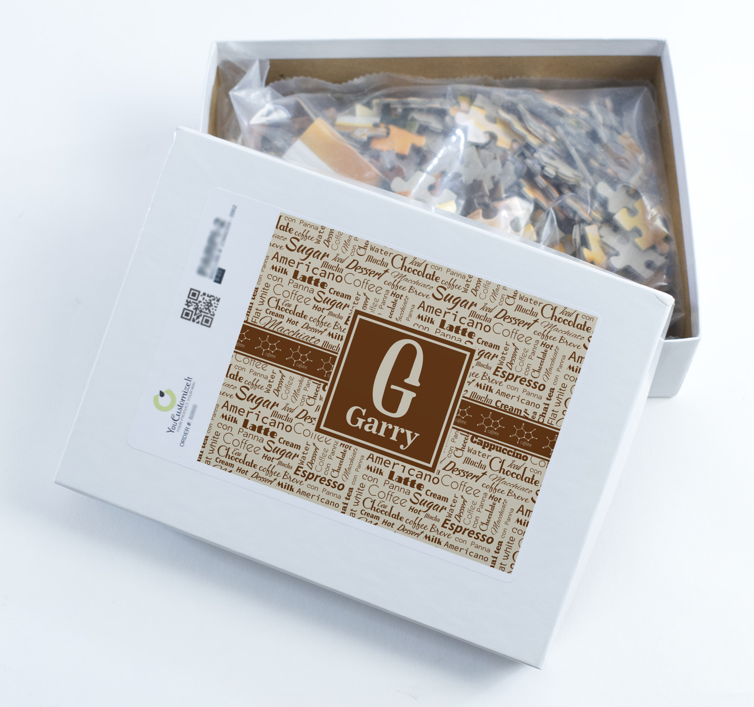 You can also upload your logo or art that you or your kids drew. To create more challenging jigsaw puzzles, you can create a pattern from with your logo or artwork. You can also add other elements such as text or personalization.