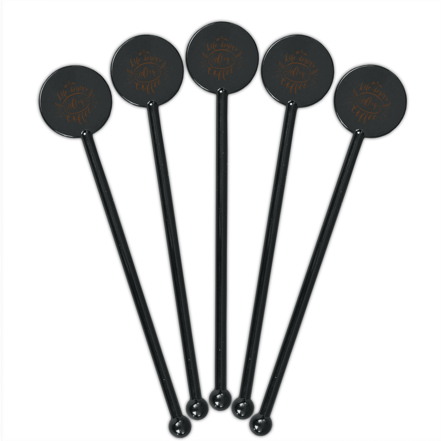 Quote + Saying Designs for 5.5" Round Plastic Stir Sticks - Black - Single-Sided
