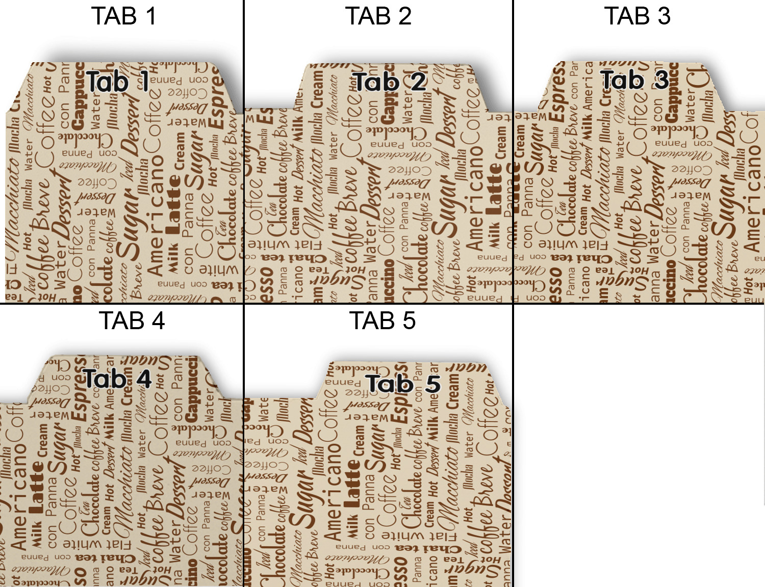 Whether you use binders at school or at work, we have designs to suit all of them. Available in 5 or 6 tab sets, you are sure to find a set to suit your needs. The back of each one is white and can be used to take notes, write vital information on, etc.