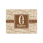 This design has a fun word cloud background with words like macchiato, sugar, coffee, latte, americano, and more. The colors are a light cream and chocolate brown. In the center is a frame where you are able to add personalization. The ribbon behind the frame has the chemical symbol for caffiene.