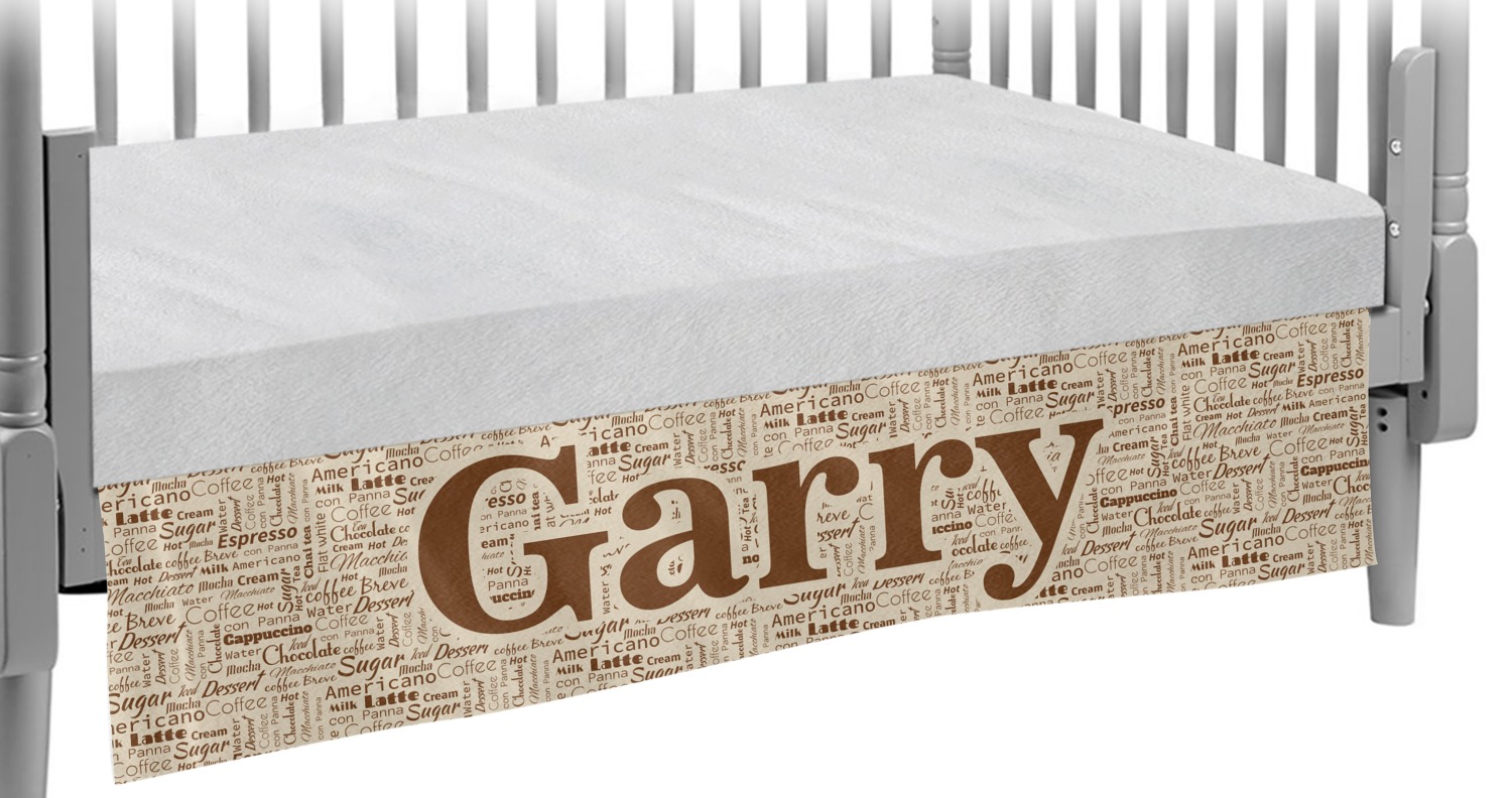 This baby crib skirt is made from two different materials and has split corners for easy placement and removal. The four corners are made from a soft, minky-like material, while the center is made of microfleece. The dual fabric makes this product durable, and still soft-to-the-touch. We provide you with the option of designing each of the four sides to be entirely unique, or to match one another, depending on your creative vision. Your personalization is displayed across the outside of the custom crib skirt, in vibrant colors. When inserted, each side panel drops 15" and is designed to touch the floor at its lowest setting.