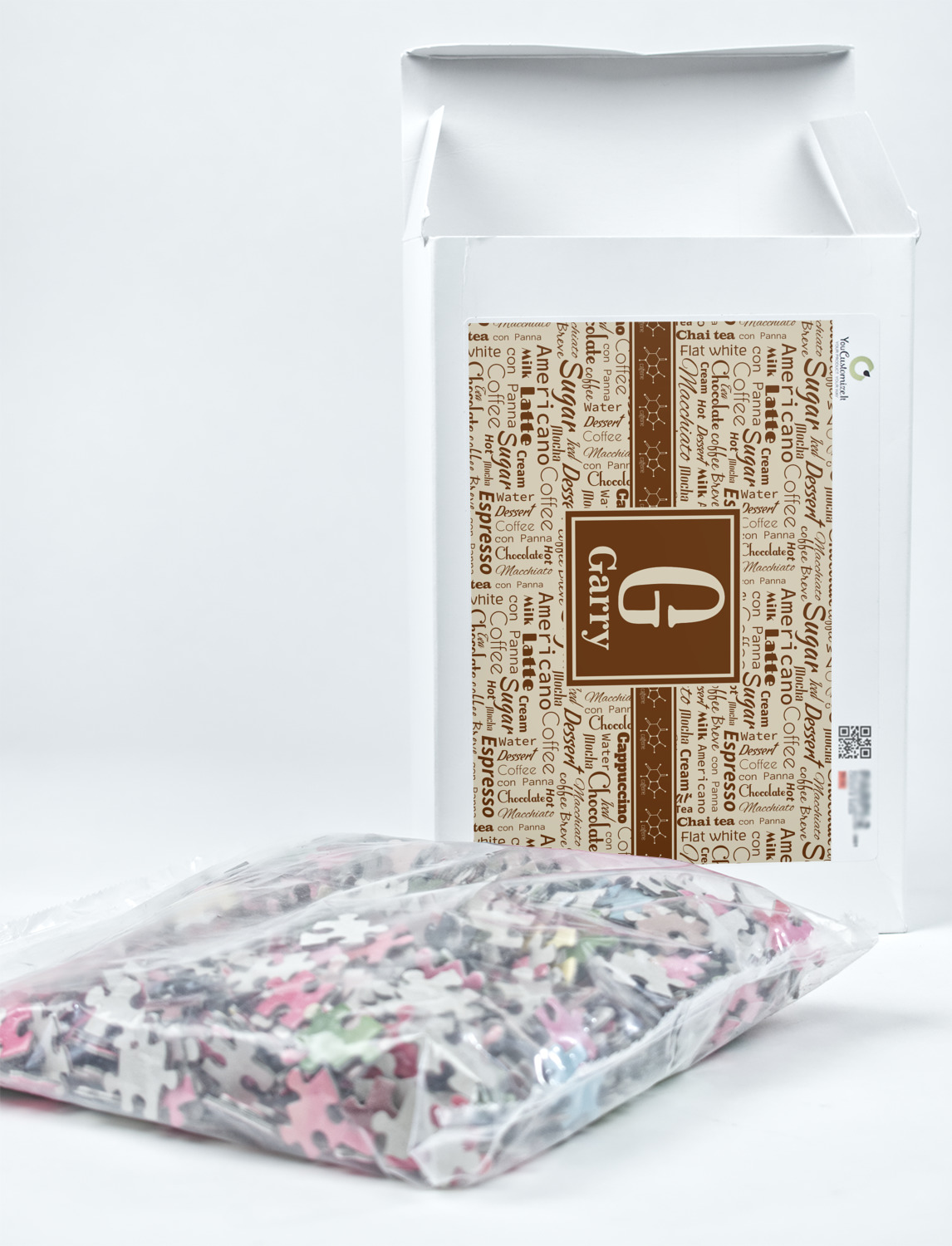 You can also upload your logo or art that you or your kids drew. To create more challenging jigsaw puzzles, you can create a pattern from with your logo or artwork. You can also add other elements such as text or personalization.