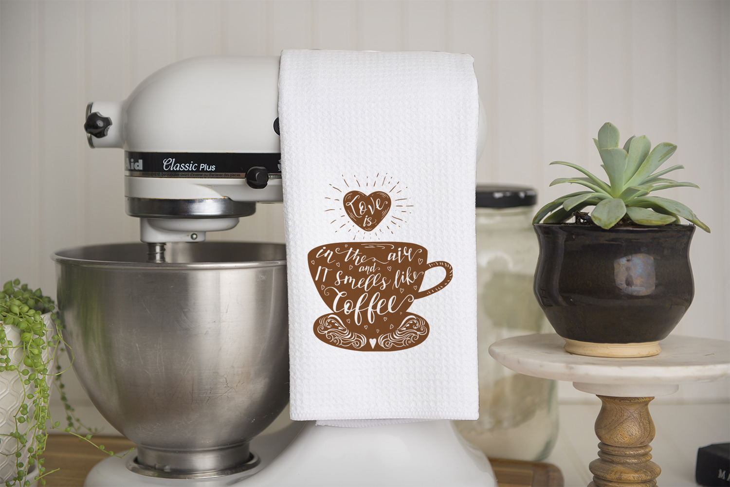These towels have a fresh and modern look. They feel crisp, clean, light and airy - especially the partial print when customized with kitchen quotes & personalization in solid black color; thus giving the towels a classic black & white look!