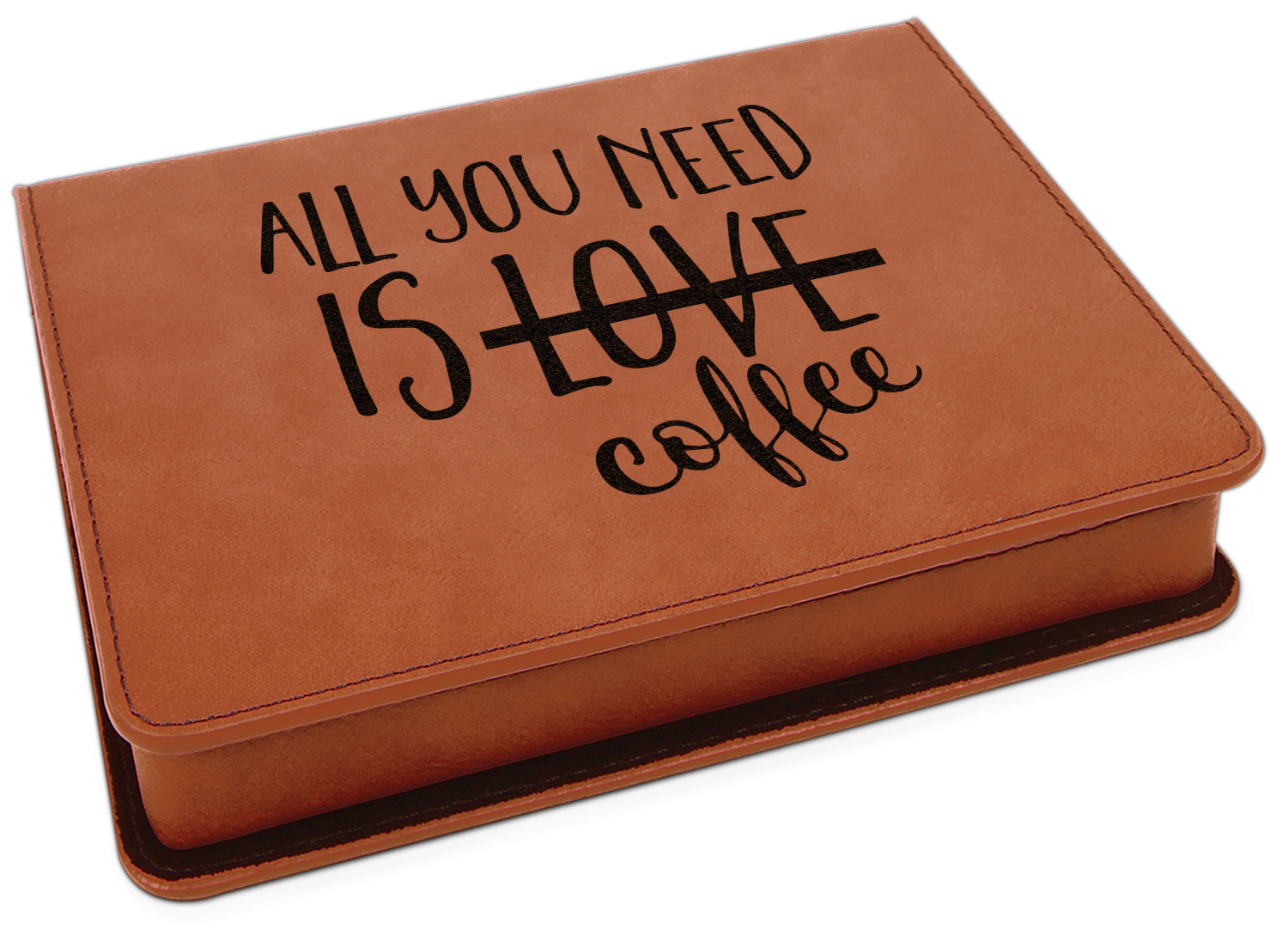This set includes a wine stopper, pourer, drip ring, and a corkscrew! The exterior of the box is a gorgeous, cognac-brown leatherette, while the interior is covered in a black, velvety material. Four foam indentations, unique to the shape of the wine tool, are found at the bottom half of the box's interior. The tools fit snugly into each of their designated spots, and the foam material helps to protect the integrity of your tools. Each of the wine gadgets features a bamboo accent, with the location and style depending on the tool itself. We laser engrave your personalized design onto the lid of the box, which easily flips open and is secured closed by a small magnet. The wine accessories box measures at 7 by 5.5 inches in total.