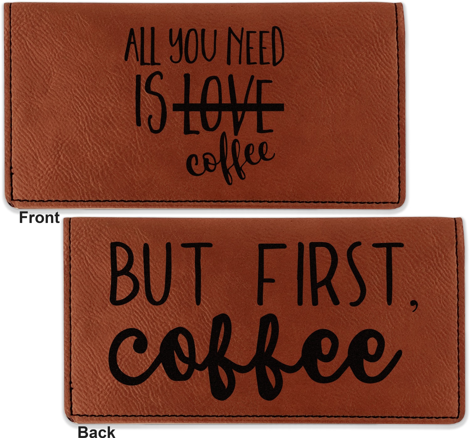 Go into our design center to start personalizing. Your checkbook cover will be laser engraved, making the graphic or text a black color. Choose a fun saying, monogram, or font to go on your checkbook cover. You have the opportunity to do it double or single sided.