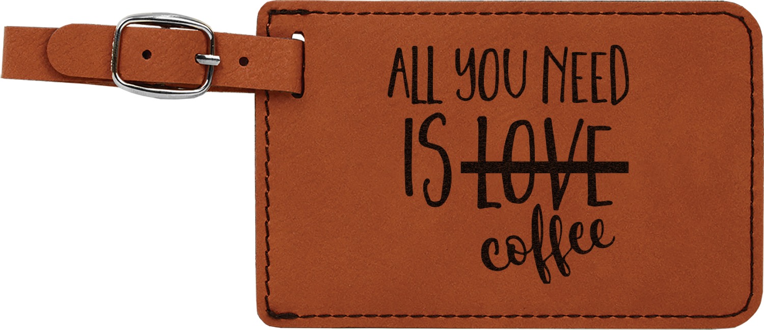 This luggage tag will surely be able to get you started in having all the right tools for traveling. It is made of a beautiful leatherette material that is a nice shade of cognac brown. The front of the tag is where your design goes. The sturdy black stitching gives your design an extra pop and gives the tag extra durability. The back of the tag has a clear vinyl window where you can slip in your address card. The tag comes with a great little buckle strap that you can easily use to clip to your suitcase. The tag itself measures at approximately 5.5"W x 4.25"H.