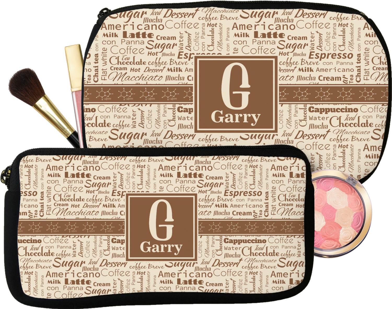 Our personalized makeup bags are available in many different designs, patterns and colors - so you are sure to find one that will love. They are made of neoprene (same material as wet-suits) and thus are water resistant, so spillages in your makeup bag will not end up all over you purse. They are customized on one side and are black on the other side and the zipper is black as well.