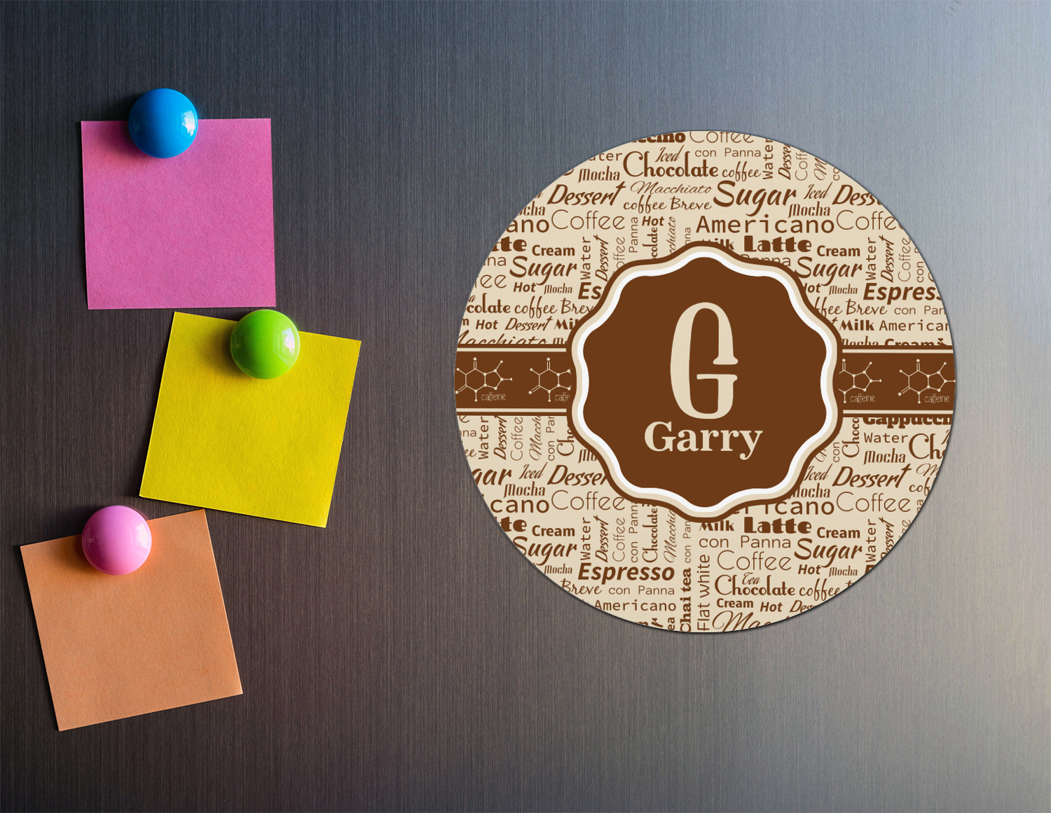 Get rid of all those unslightly magnets you've gathered from food delivery places and jazz up your fridge with our personalized round magnets. If you're looking for a small gift with a big bang you've found them!! With the designs and colors from our collections you are sure to find one that fits anyone's personality.