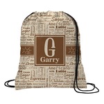 This design has a fun word cloud background with words like macchiato, sugar, coffee, latte, americano, and more. The colors are a light cream and chocolate brown. In the center is a frame where you are able to add personalization. The ribbon behind the frame has the chemical symbol for caffiene.