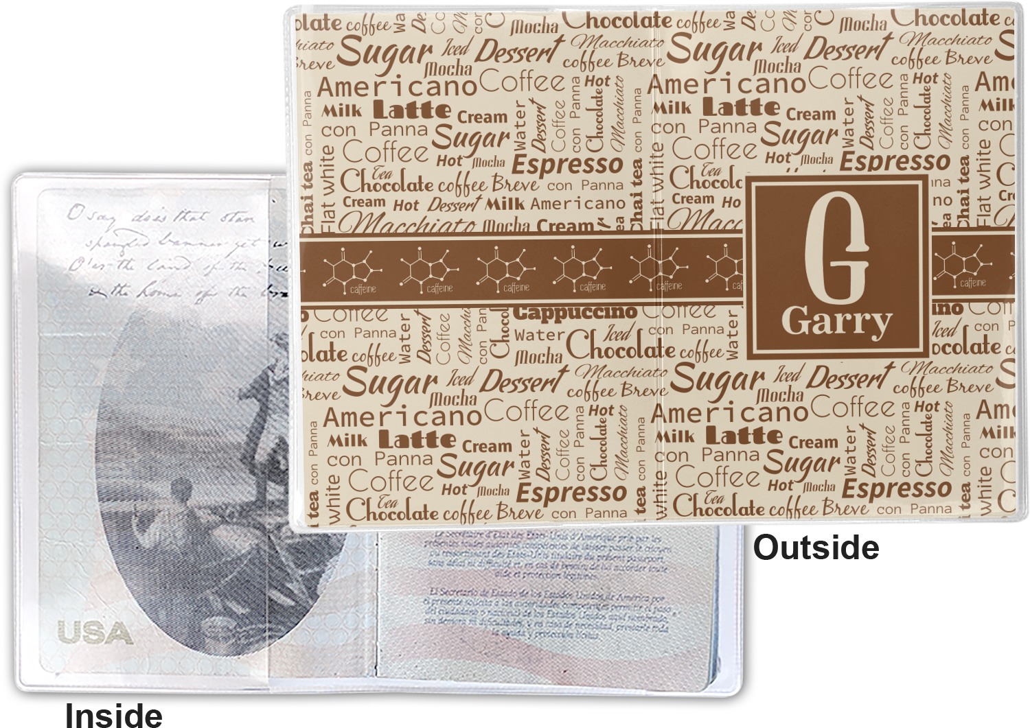 This cover is made of a sturdy clear vinyl with a personalized vinyl insert inside. There is a large and a small pocket on either side to hold the covers of your passport easily and firmly. The passport holder is approximately 7.5" x 5.25", the perfect size to snugly fit your passport. This slim cover is the perfect way to protect your passport without being one more bulky item you have to carry.