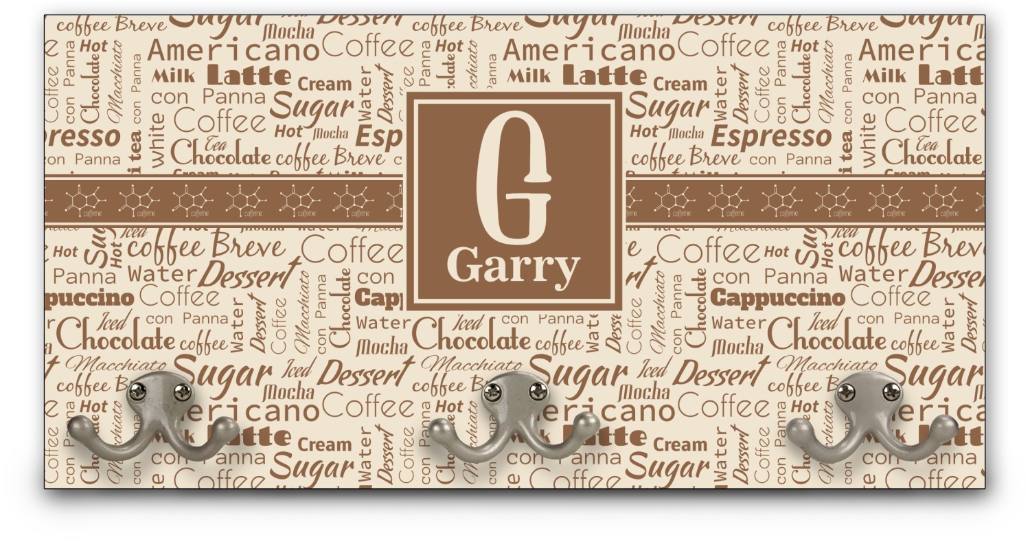 This coat rack is the perfect way to add some personality to your wall or entryway. The board is made of a strong maple that is approximately 16" x 8". The three 2-prong hooks are a sturdy metal that have three screws attaching them to the board. Your design is printed right onto the front of the board while the back and sides are a simple black.
