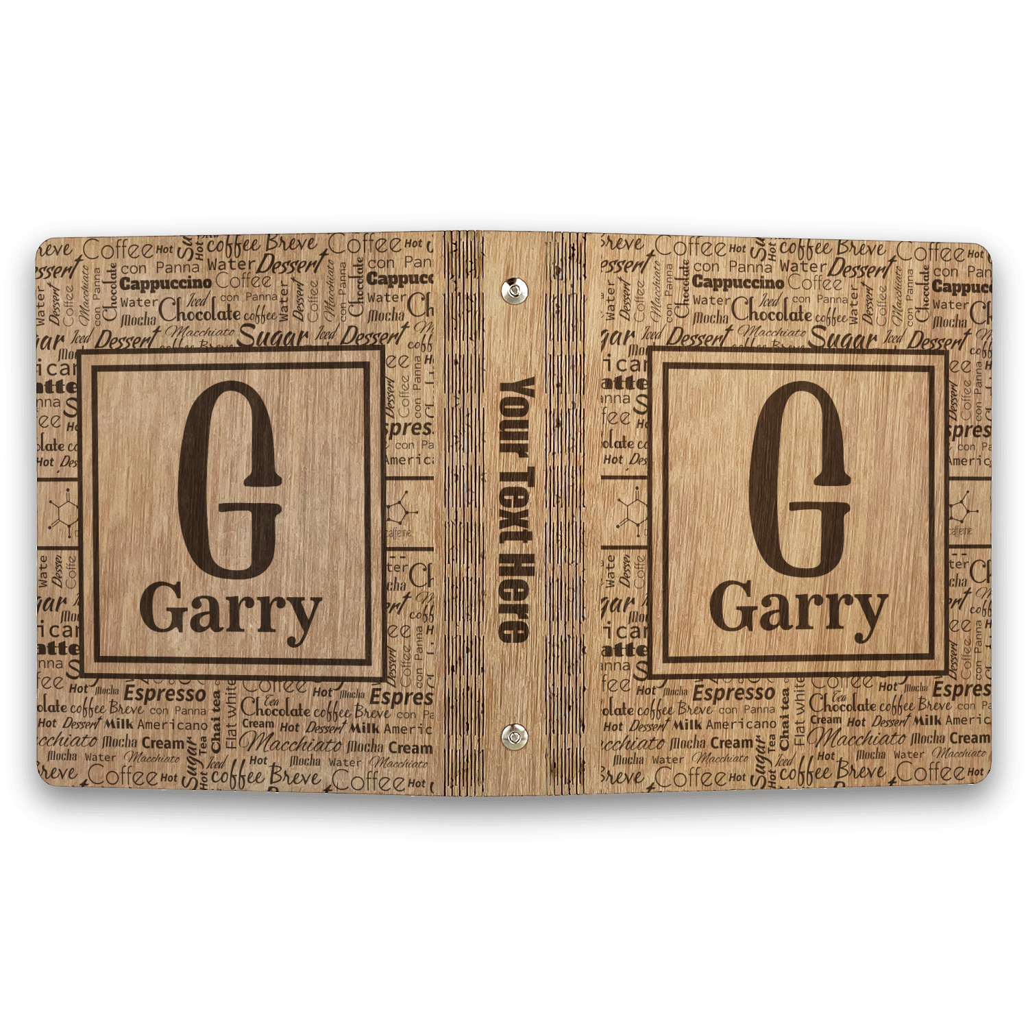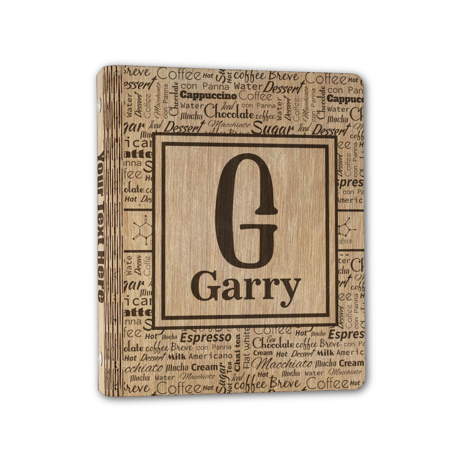 Made from premium hardwood, these are laser engraved then polished with wax to give a nice sheen and smooth feel to the product. The inside of the binders are finished with a faux leather material which is bonded to the inside of the wood to strengthen the wood and give the inside the same refined finish. The rustic brown and gold leather material adds a nice classic touch to the binders.