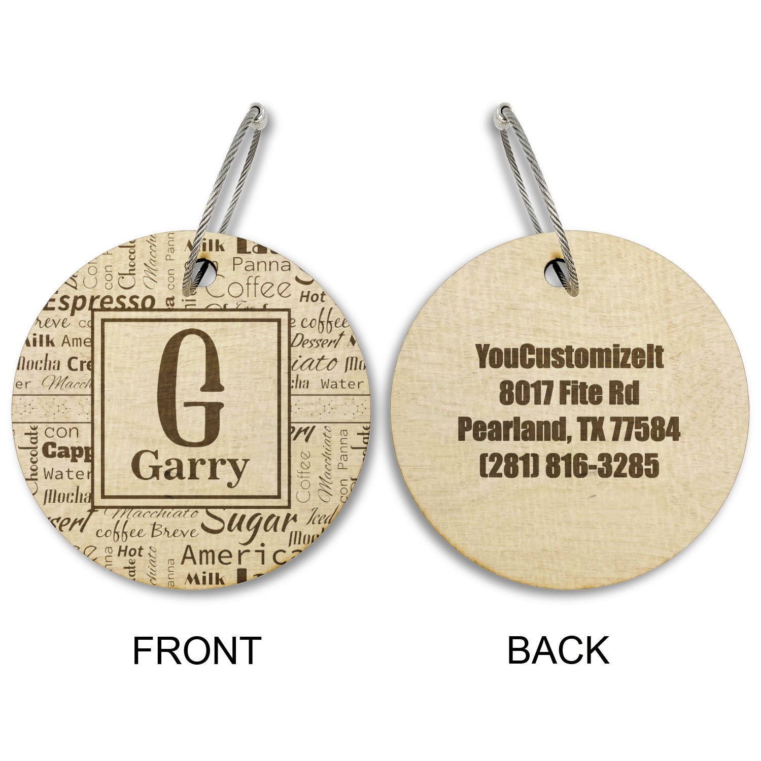 Made from a premium hardwood, these luggage tags are laser engraved and cut just for you. The front contains your design of choice and the back has your contact information to ensure your luggage gets back to you if ever lost.