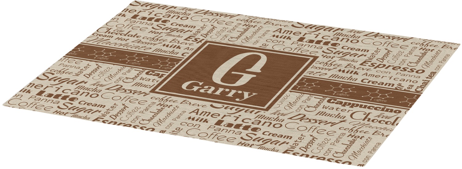 Each of our table mats are a poly twill material with woven burlap detailing. This creates a soft, quality placemat for us to fully print your personalized design across. The woven twill also adds a wrinkle-free surface to set your table! Each customizable placemat is a rectangle shape measuring at approximately 13 x 18 and printed here in the USA.
