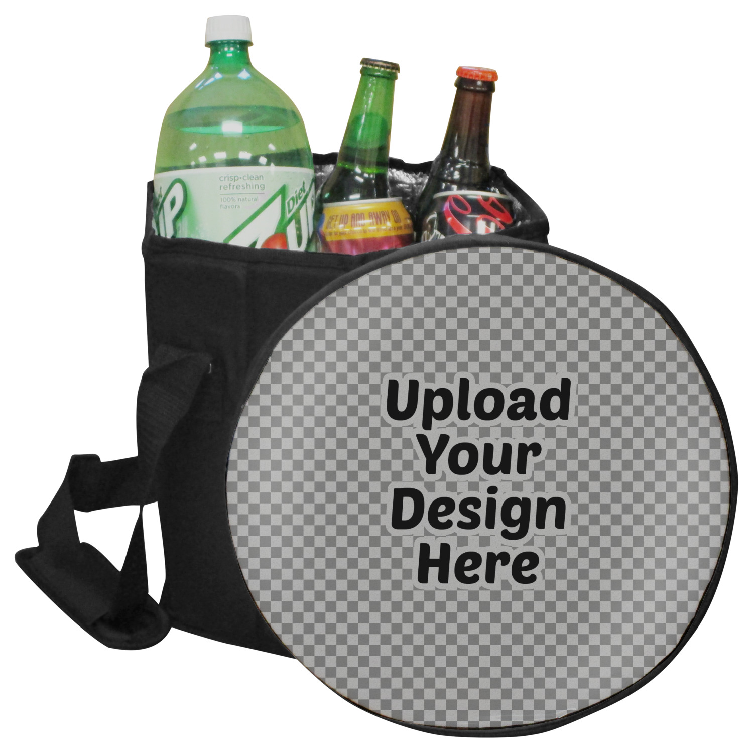 Our collapsible insulated coolers feature a unique six-sided hexagon shape, are lightweight, durable and can be turned into a seat. This cooler is fully insulated with silver foil lining to keep food and drinks hot or cold, and has a 12-quart capacity. Although this cooler collapses for easy transport, hidden inside are composition panels made of sturdy wood that give the frame strength and allow this cooler to be used as a seat. Simply sit down on the personalized cover and give your legs a break! (Maximum weight capacity of 200 pounds.)