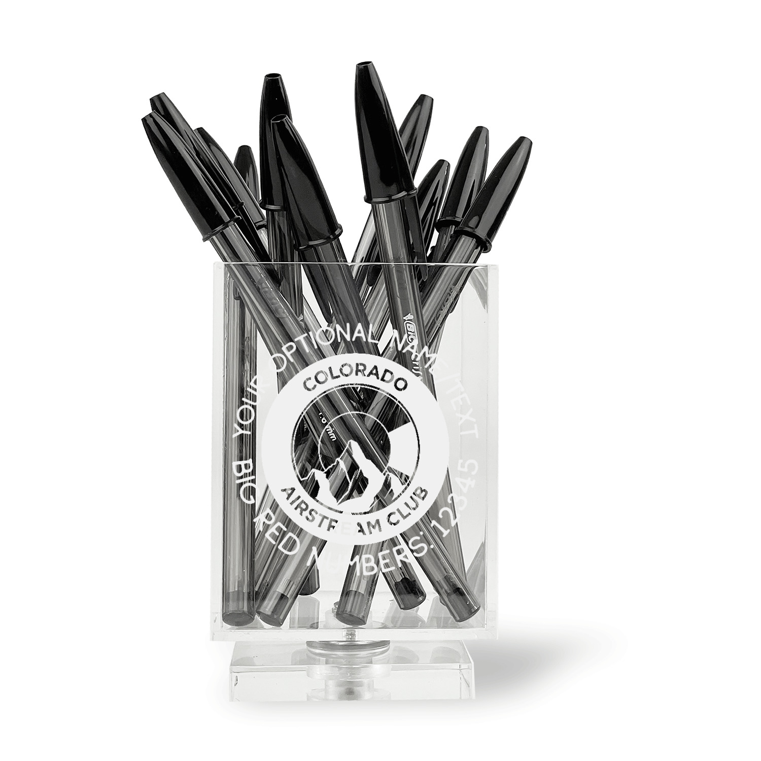 Add a great accessory to your desk with one of these acrylic pen holders. A great way to store your writing utensils, and personalized to suit your needs.
