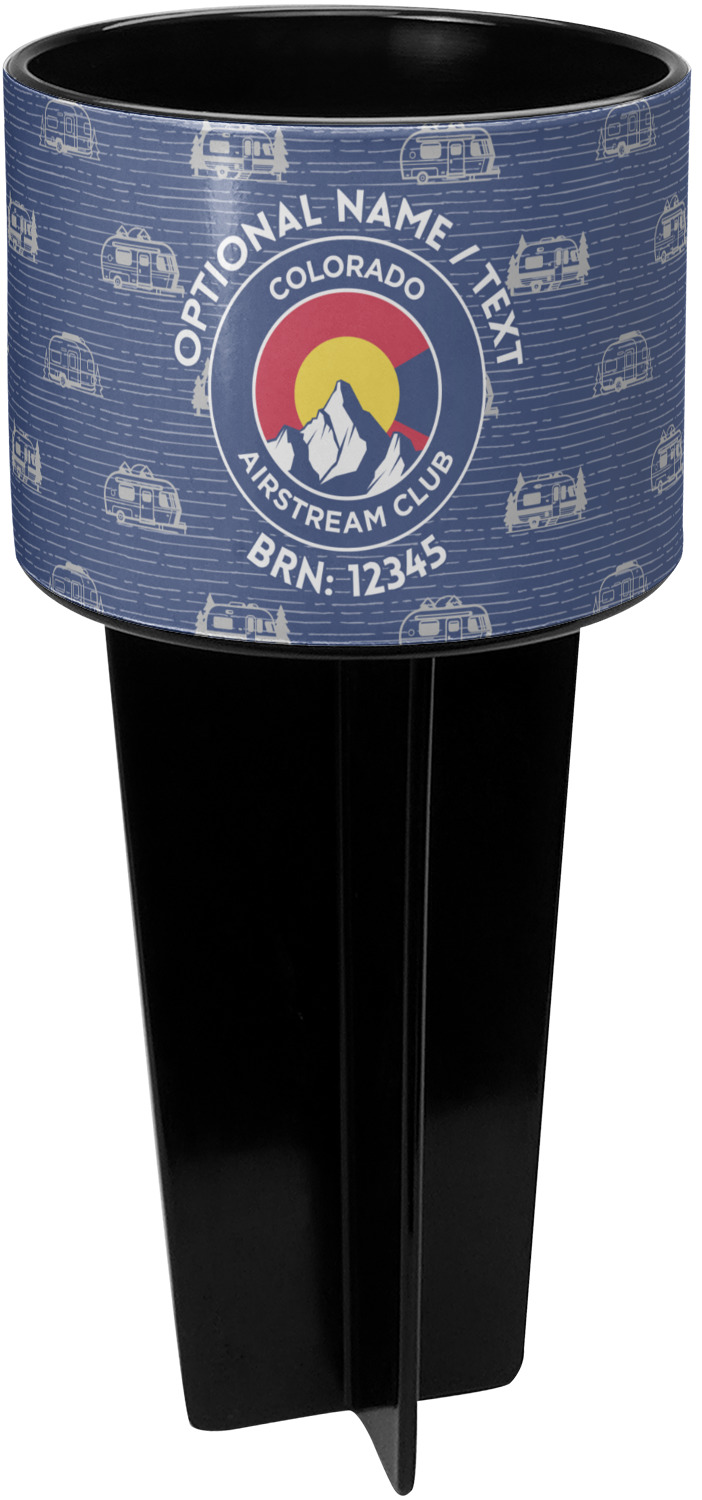 This cup holder has a large stake at its bottom that anchors it to the sand or ground below, while the cup holder rests above the stake. The entire drink holder is made of durable plastic and displays your customization around the cup holder portion. We sell these personalized beach spikers in two different colors: black and white.