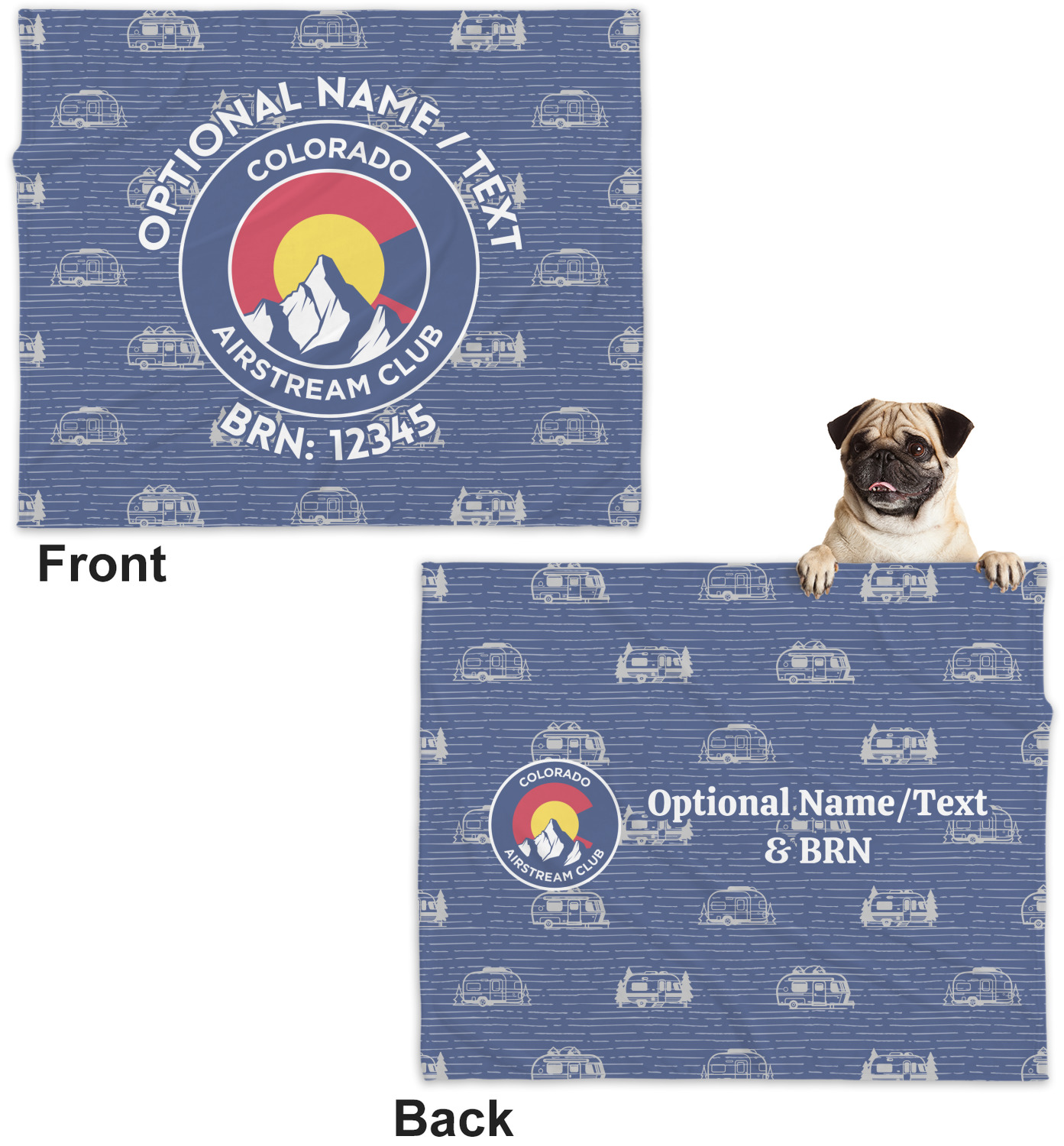 These dog blankets are crafted from a gentle, soft-to-the-touch, minky material. We print your customizations, either matching or differing, on both the top and underside of the blanket. These personalized dog blankets are available in two sizes: regular and large. Our regular size, at 40" x 30", accommodates small and some medium size dogs. At 60" x 50", our large dog blanket is a better fit for bigger breeds. Though specialized for dogs, these blankets still make a thoughtful gift for your favorite feline, or any other pet in mind!