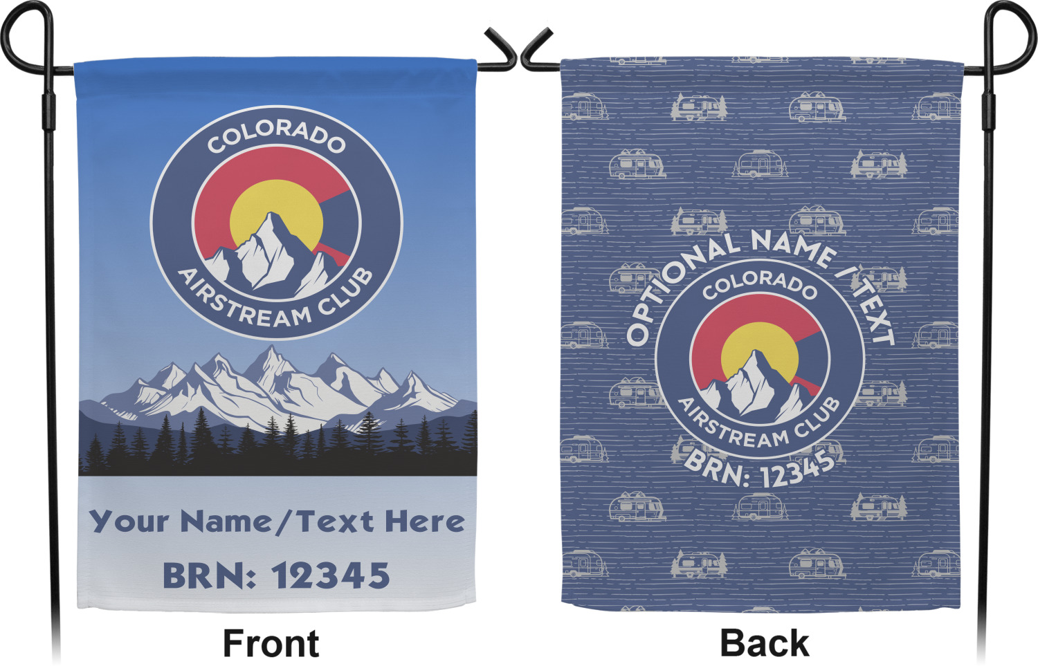 These custom garden flags are made of a durable, double-ply, polyester weave, allowing them to withstand the elements year round. The small flags measure at approximately 12 by 18 inches. The large flags measure out to 28 by 37 inches. You can order these decorative flags with your customization printed on the front only, or the front and back.