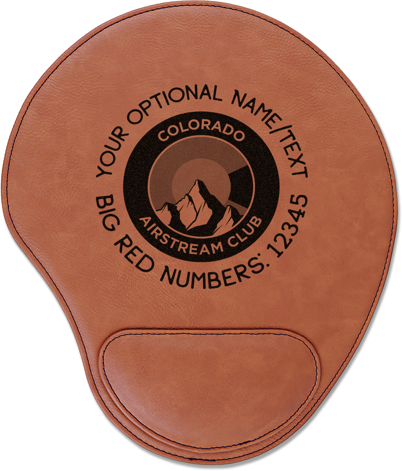 In a rounded shape, this mouse pad is made of a luxurious, cognac-colored leatherette. The nature of this material allows your mouse to glide smoothly across its surface. Strong stitching lines the edges to guarantee stability and strength. As added support for tired wrists, your personalized mouse pad features a supportive wrist rest at its bottom. This model measures at 10.25" x 9", while its wrist pad is approximately 5" x 2.75", with a thickness of 0.75". Your personalized design is laser engraved into the front face of this mouse pad.