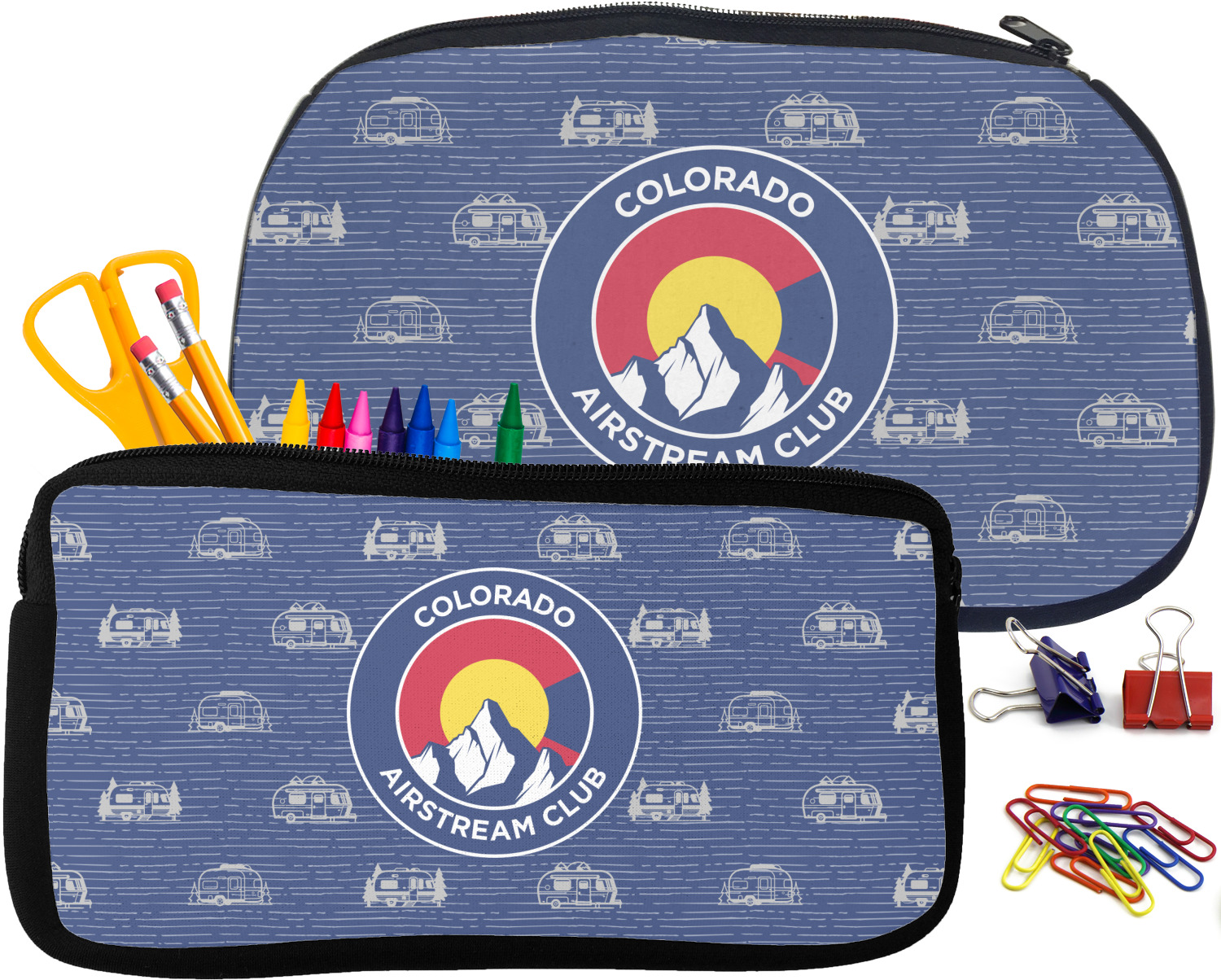 Built from durable neoprene, these pencil pouches, are water resistant, and prevent leaking ink from spilling into your backpack or purse. These custom pencil cases secure with a robust, black zipper. We print your personalized design on the front of this pouch, while the remaining sides a simple black color. These colored pencil cases [880] are sold in two sizes; our smaller version measures at 8.5 by 4.5 inches, while the medium measures at 10.5 by 6.5 inches. The smaller size is more suitable for holding pencils and pens, while our medium size can accommodate pencil sharpeners, scissors, and erasers.