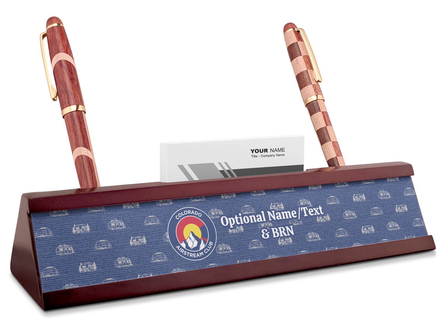 Your desk name plates are crafted from a high-quality, dark-cherry mahogany. At approximately 9.5 by 1.875 by 2.5 inches, this name plaque will fit perfectly, front and center, on your desk. Your customization spans across the entire face of the nameplate. Behind the nameplate lies a skinny slot that can fit approximately 15, traditionally-sized, business cards. You can also store your writing utensils on either side of this custom desk name plate.