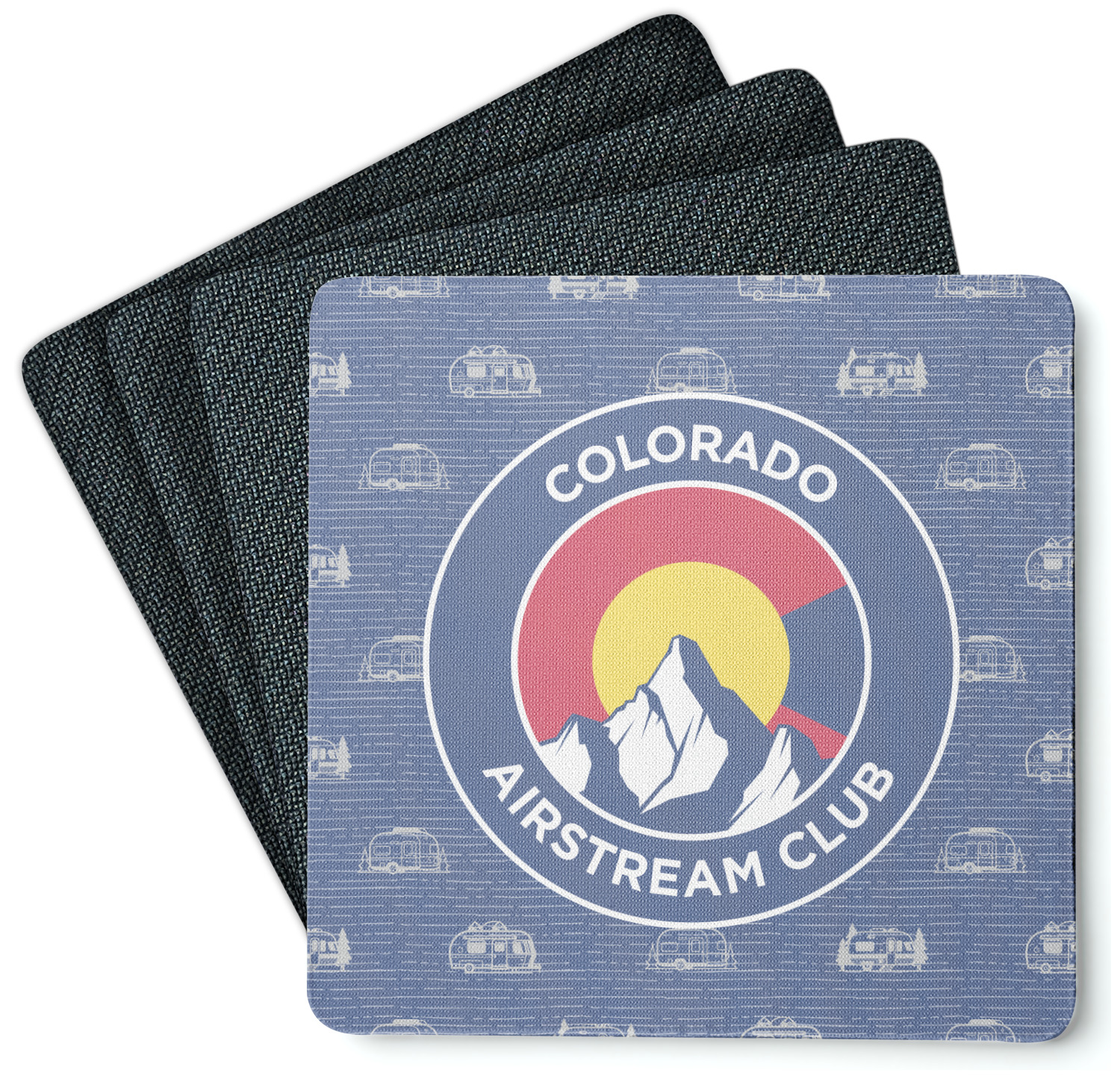 These drink coasters have a smooth, polyester top and a textured, rubber backing on its bottom. The non-slip rubber backing underneath works to keep any spills at bay. At 4 by 4 by 0.25 inches thick, these custom coasters are a suitable size for most drinkware. Your personalization is displayed atop the face of the cup coaster. We sell these rubber coasters in two different shapes: square and round. You can buy each shape as singulars or as a set of 4.