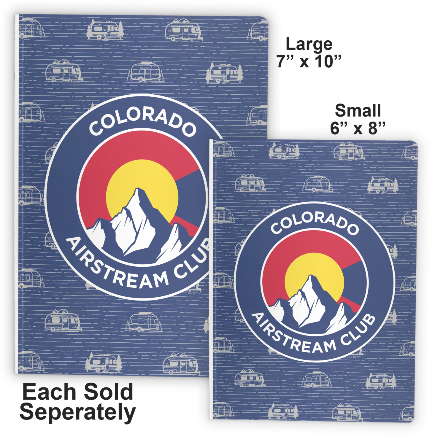 We offer these notebooks in two different sizes. The small notebook is 8" x 5.75", and fits snugly in purses or totes. The large notebook measures at 10" x 7.25", and can be carried in briefcases and backpacks.