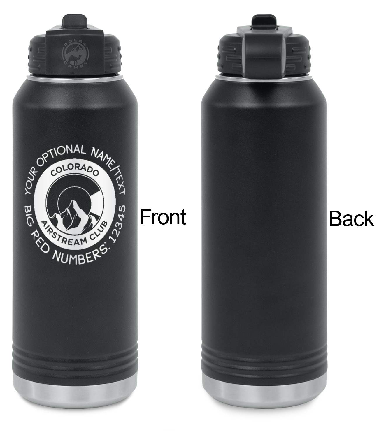 These 32 oz. water bottles are constructed from 18/8 durable food grade stainless steel. The inside of the water bottle is silver; while the outside is powder coated black