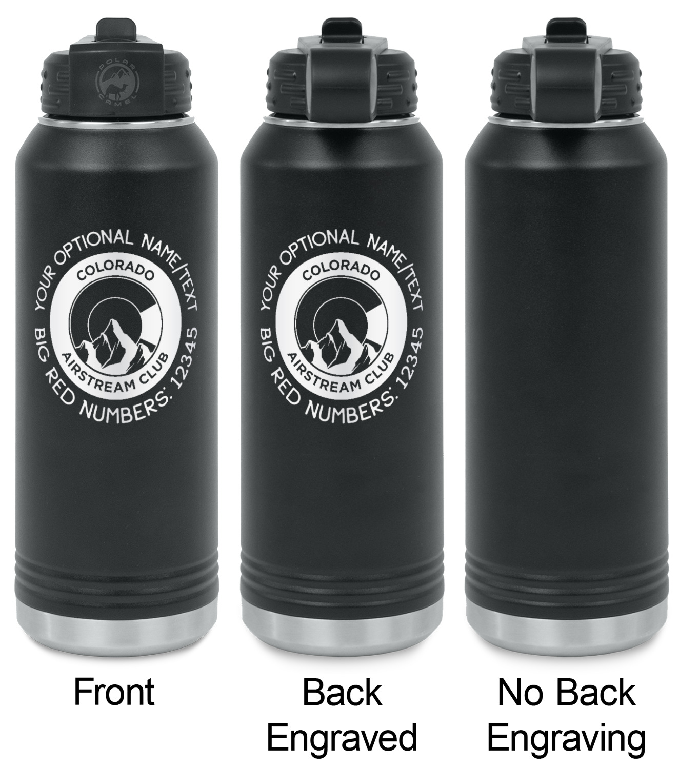 Our laser engraved stainless steel water bottles are designed for on the go lifestyle. These water bottles are perfect for the gym, the office, traveling, camping, hiking etc.