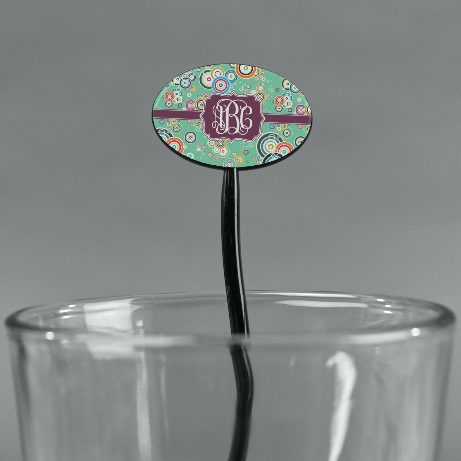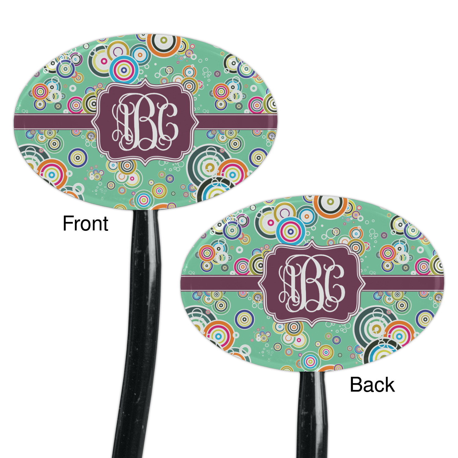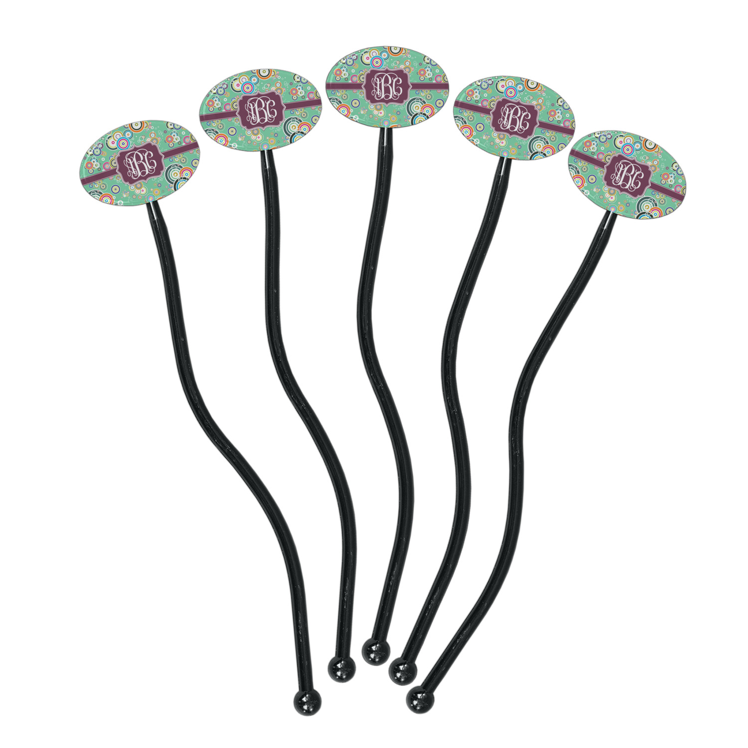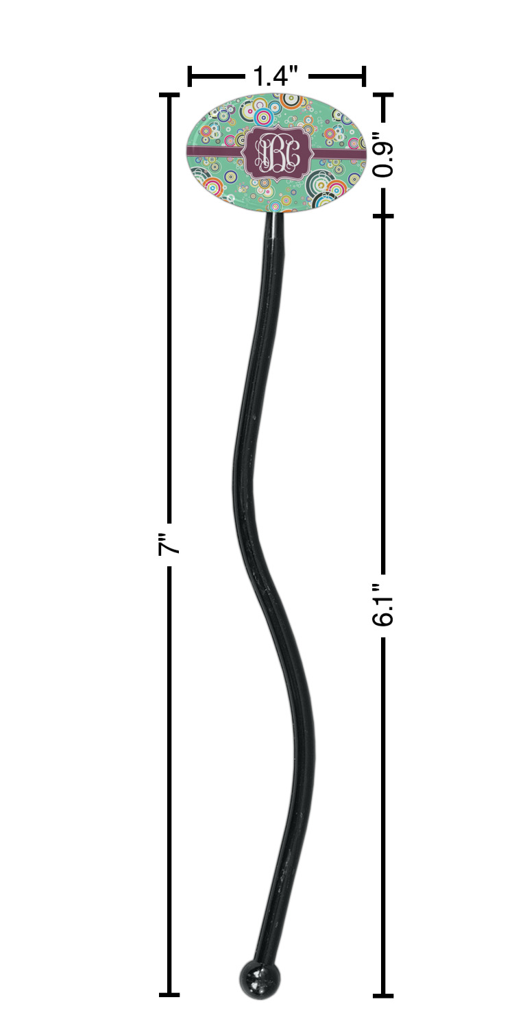 Circles Designs for 7" Oval Plastic Stir Sticks - Black - Double-Sided