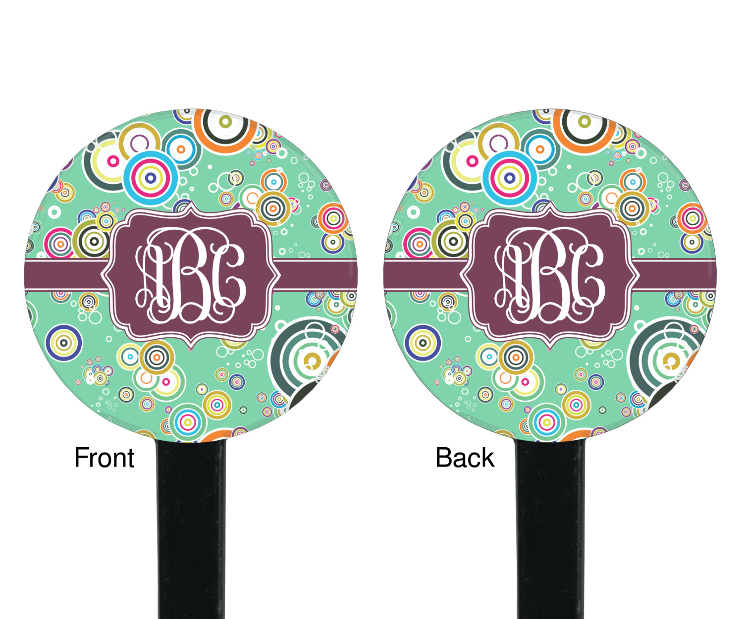 Circles Designs for 7" Round Plastic Stir Sticks - Black - Double-Sided