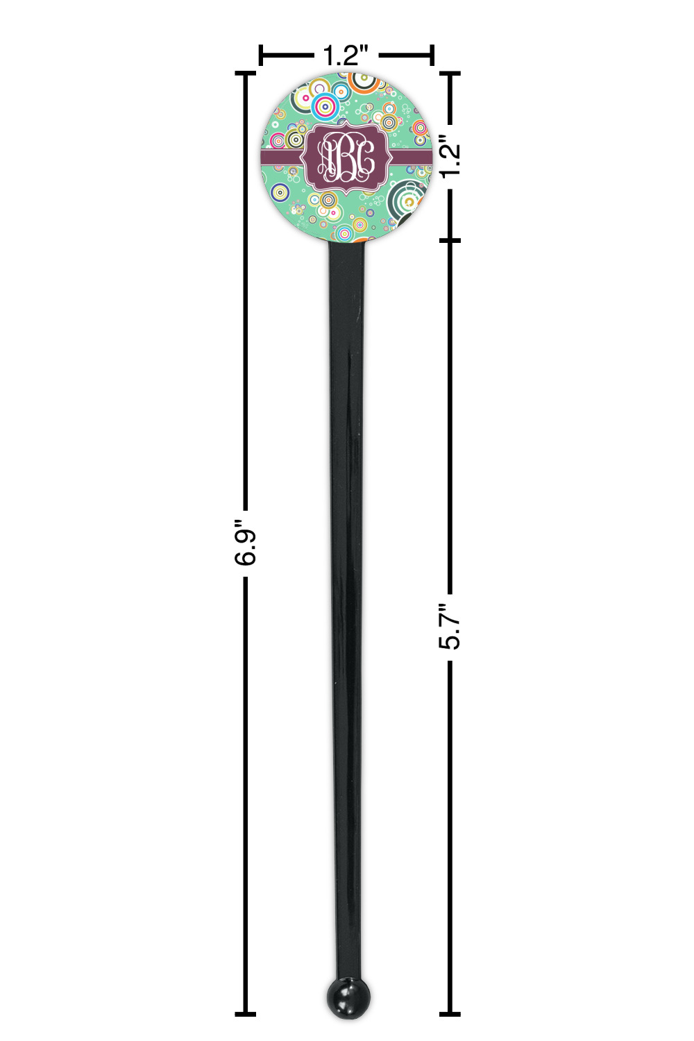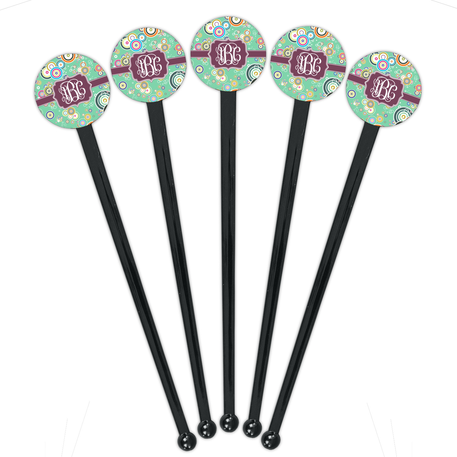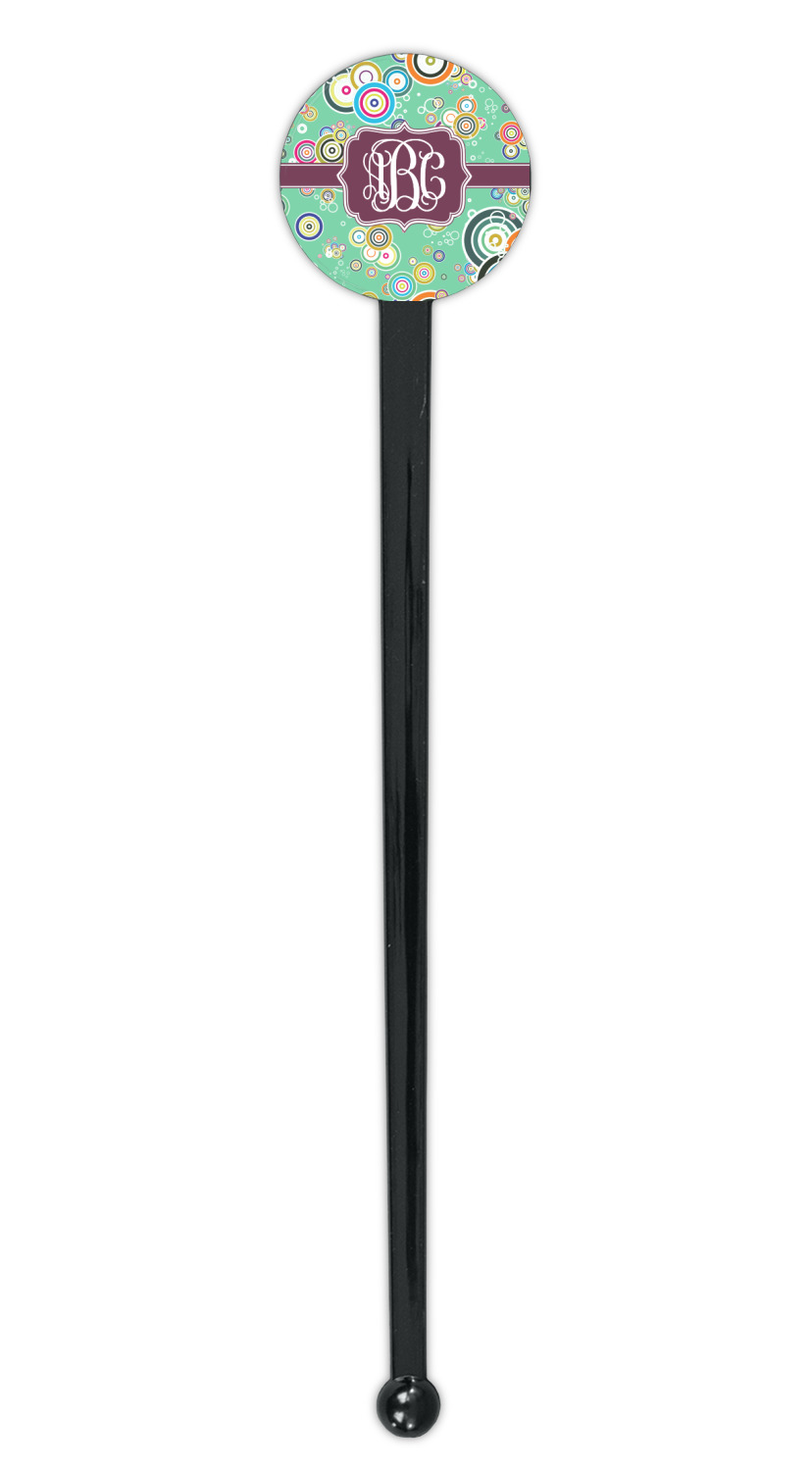 Circles Designs for 7" Round Plastic Stir Sticks - Black - Single-Sided