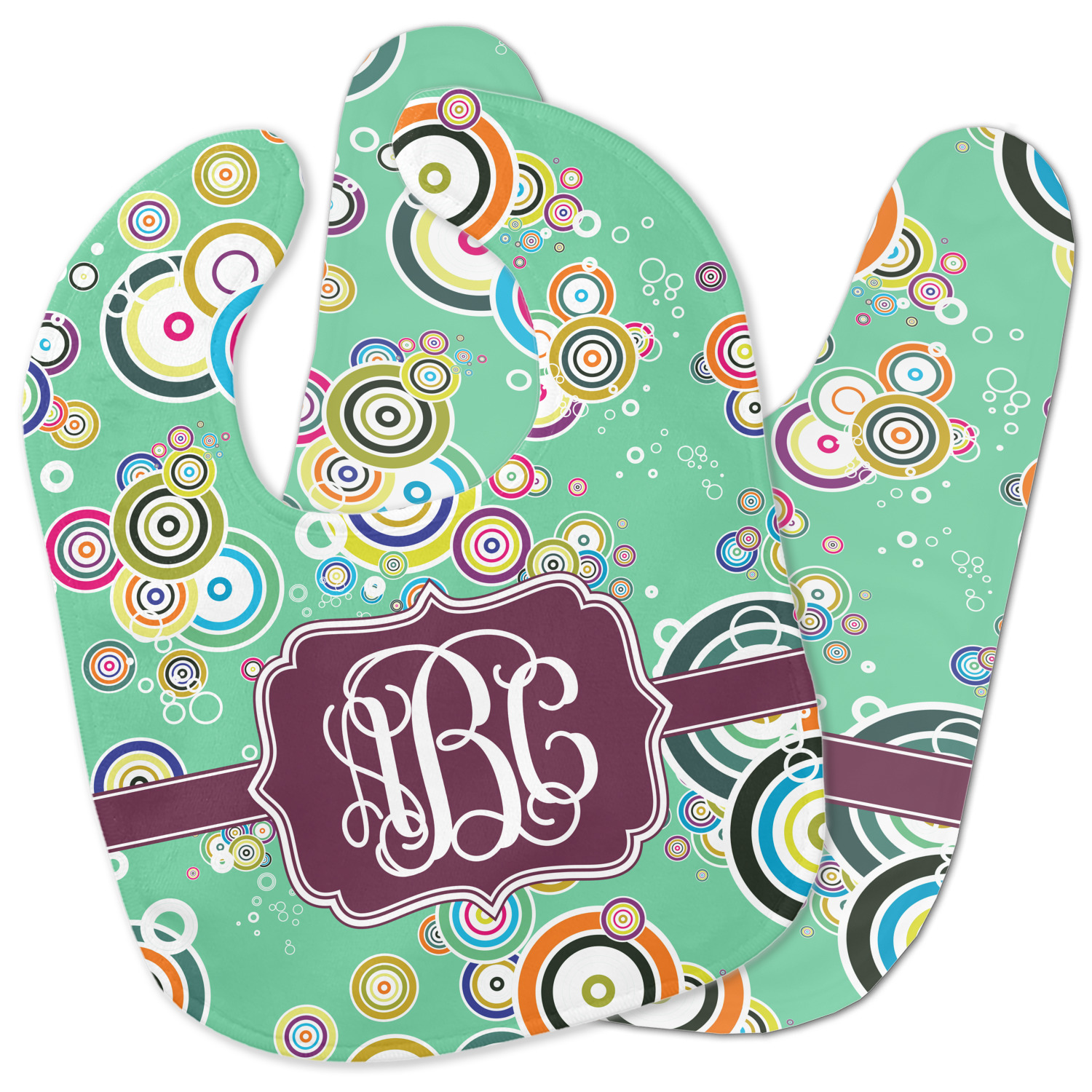 Made of soft polyester, each customizable bib hugs comfortably around the neck to catch every drip and drool. Each bib design is printed with baby-safe ink and finished with a secure stitch pattern and velcro clasp. We carry two customizable bib styles -Microfiber Velour and Jersey Knit.