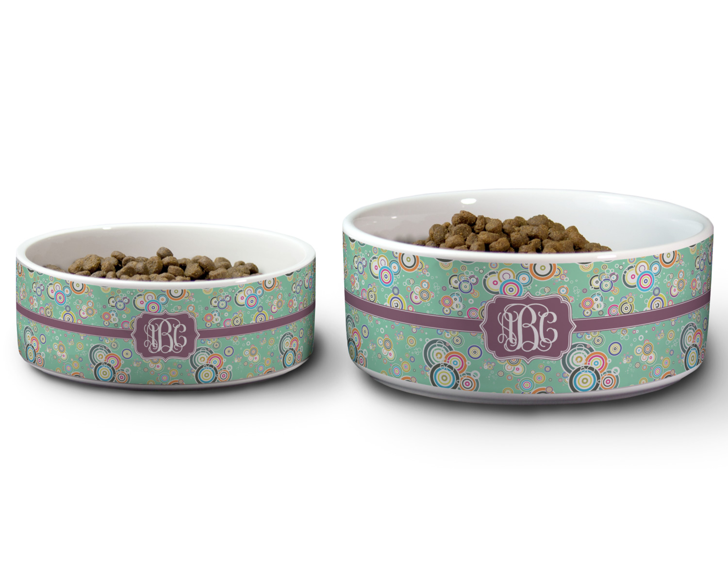 Our customized, ceramic dog bowls allow you to fashion a durable, yet expressive gift for your pet. These bowls are fashionably versatile; they suit both cats and dogs and can hold either food or water. Add your pet's name or favorite color to the design, and spruce up his/her eating area with one or two personalized pet bowls!