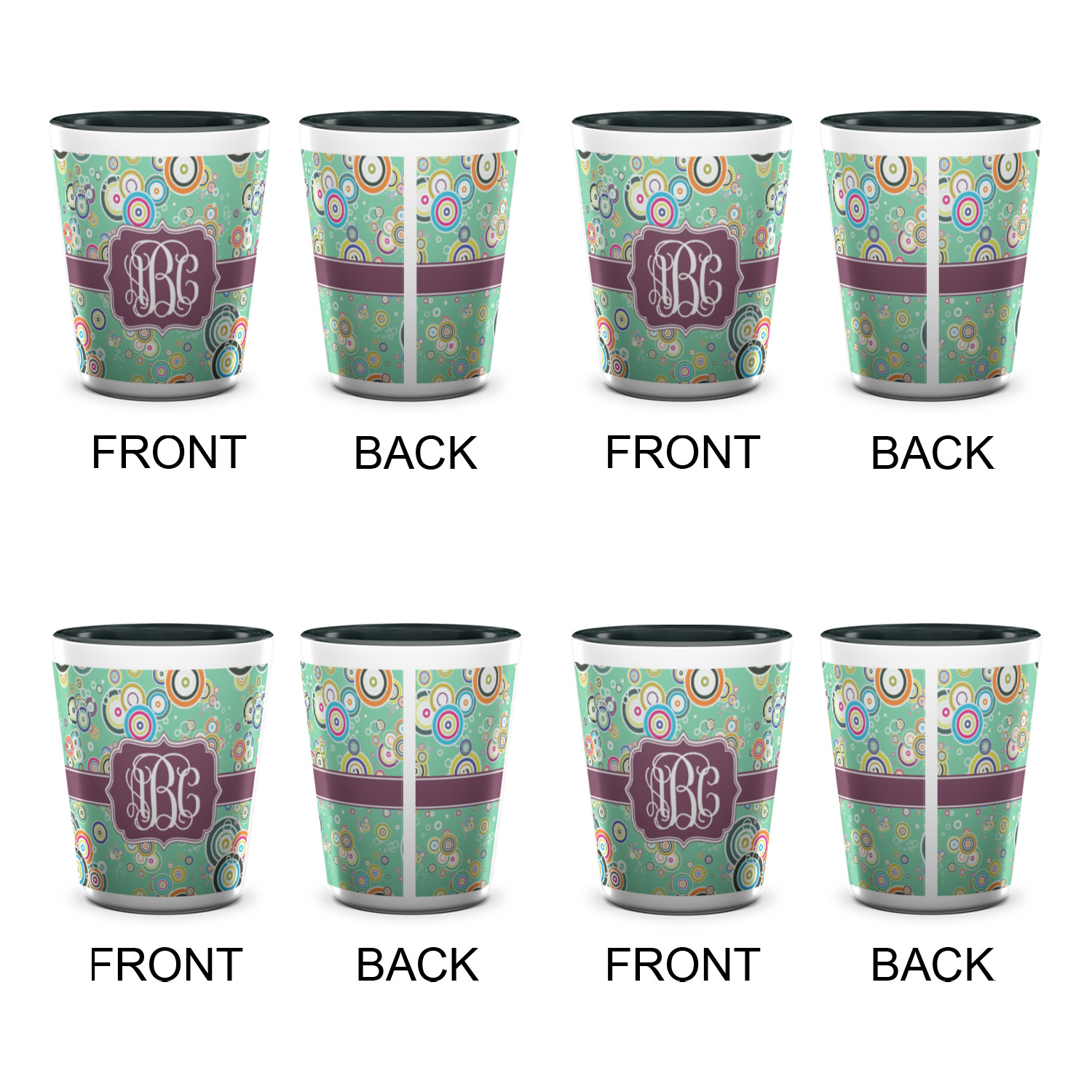 Circles Designs for Ceramic Shot Glasses - 1.5 oz - Two Tone - Set of 4