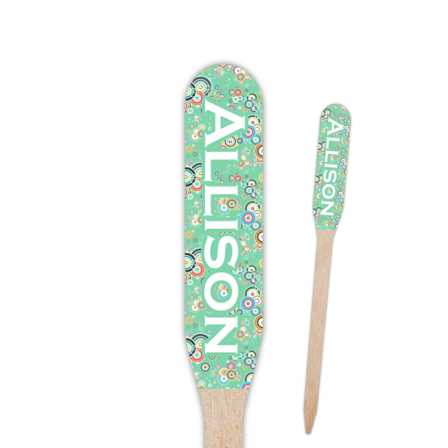 Our paddle style food & drink picks are available in 2 print styles - single sided and double sided.