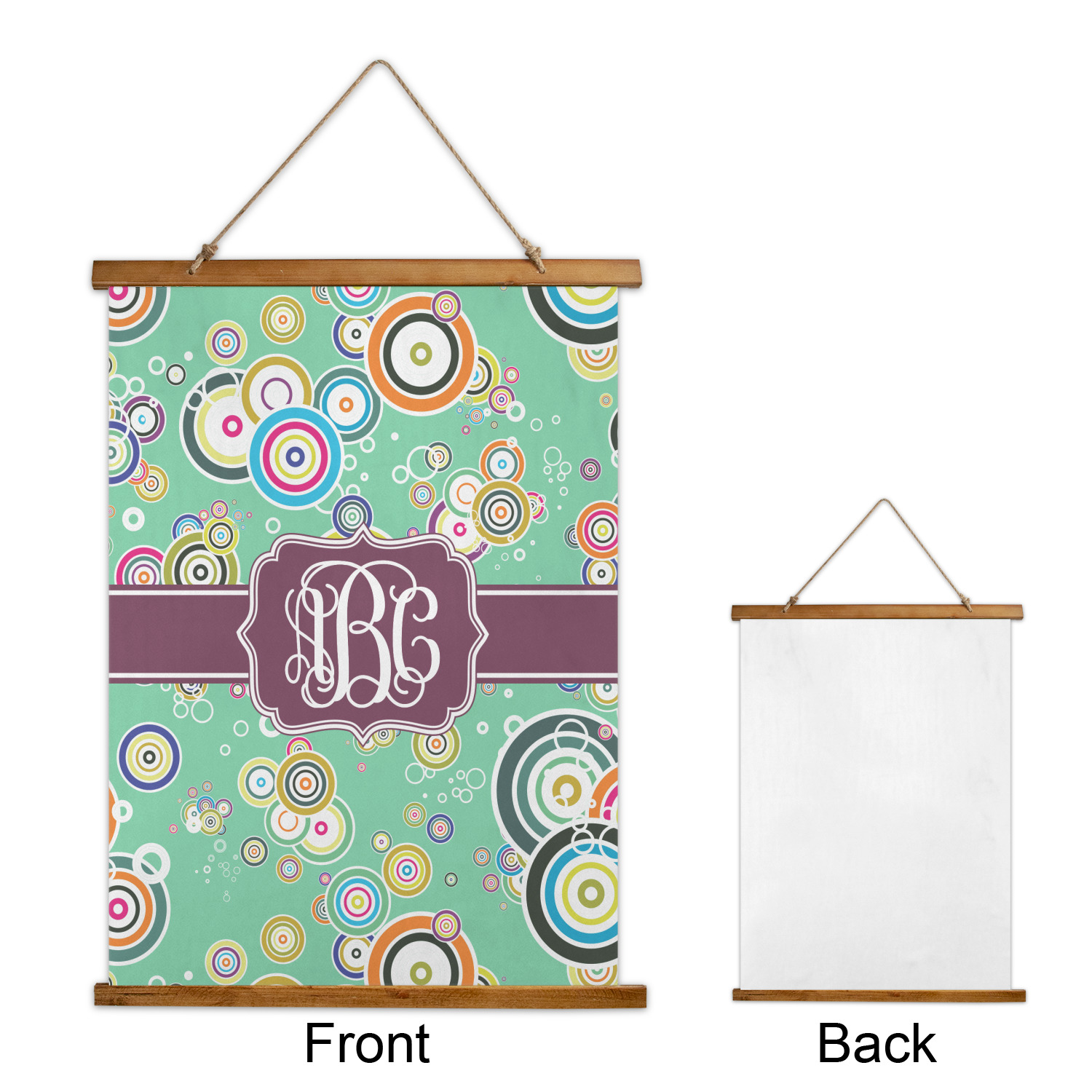 Made in two different orientations - portrait or landscape - both are 26" x 36". Your design is printed on a high quality polyester fabric with hemmed edges. The wood on the top and bottom of the tapestry is 1.25" tall and 0.25" thick and there are two pieces on top and bottom which sandwich the fabric.