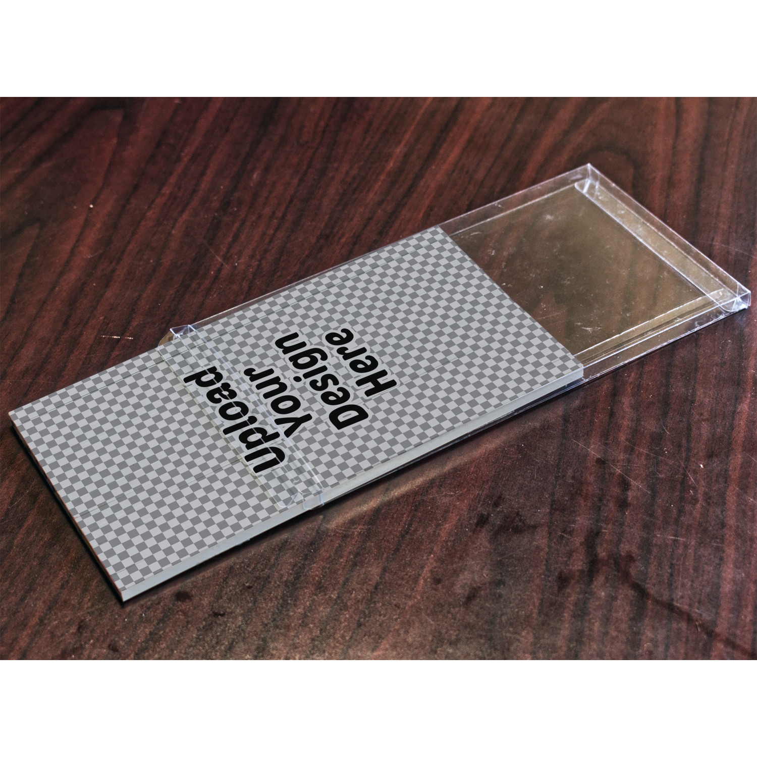 Your artwork / design is printed in full color across the top of all 13 pencils. The back and sides of the pencils are white. The pencils come in a clear plastic container / carrying case.