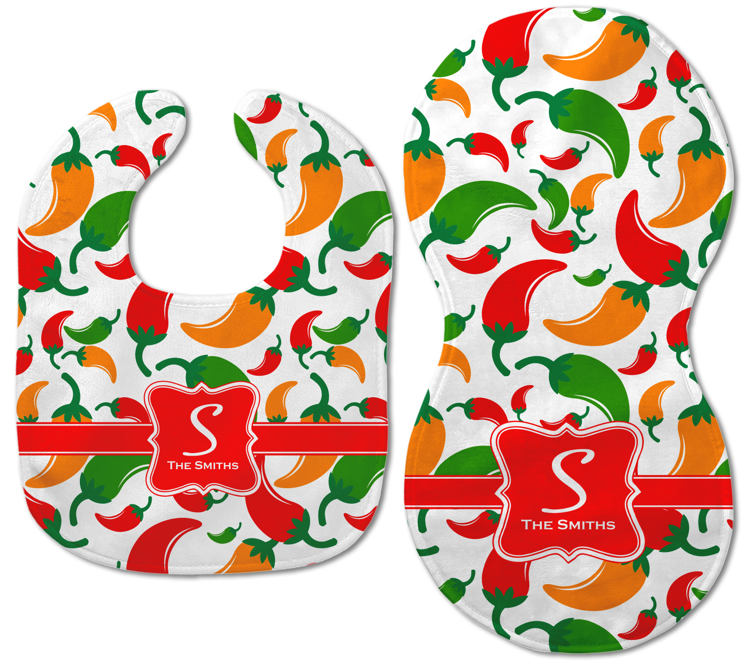 Both our baby bib and burp pad are made up of soft, microfiber velour with a cotton backing. The comfortable and plush material of our bib and burp set is perfect for both baby and parent. We print your design on the microfiber velour face fabric with baby safe ink on your customizable bib and burp cloth to ensure safety for the little one! Our drool bib also comes with a Velcro clasp for safe and easy wear while the burp cloth is a unique peanut shape that perfectly hugs over the shoulder.