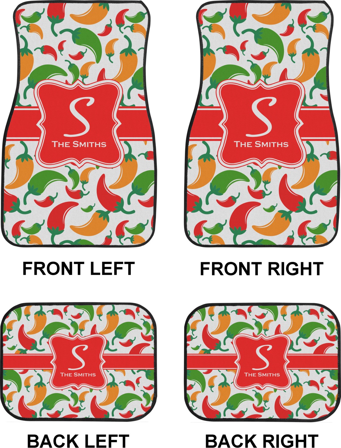 We craft our auto floor mats mats from polyester, apply a black finish to the edges, and lined at the bottom to prevent slippage. These mats protect your floors from grass, mud, and any accidental spills. We display your personalized design on the front face of each mat. The sizes of these car floor liners are standardized to provide a versatile fit for all vehicles. The front rows car mats measure at 17 by 26.5 inches, while the back rows measure at 17 by 13 inches. We sell three packages of car floor mats. You can purchase a pair of front row car mats, a pair of back row car mats, or a set of front row and back row car mats. To make an informed purchase, we recommend measuring the surface area of your car floors.