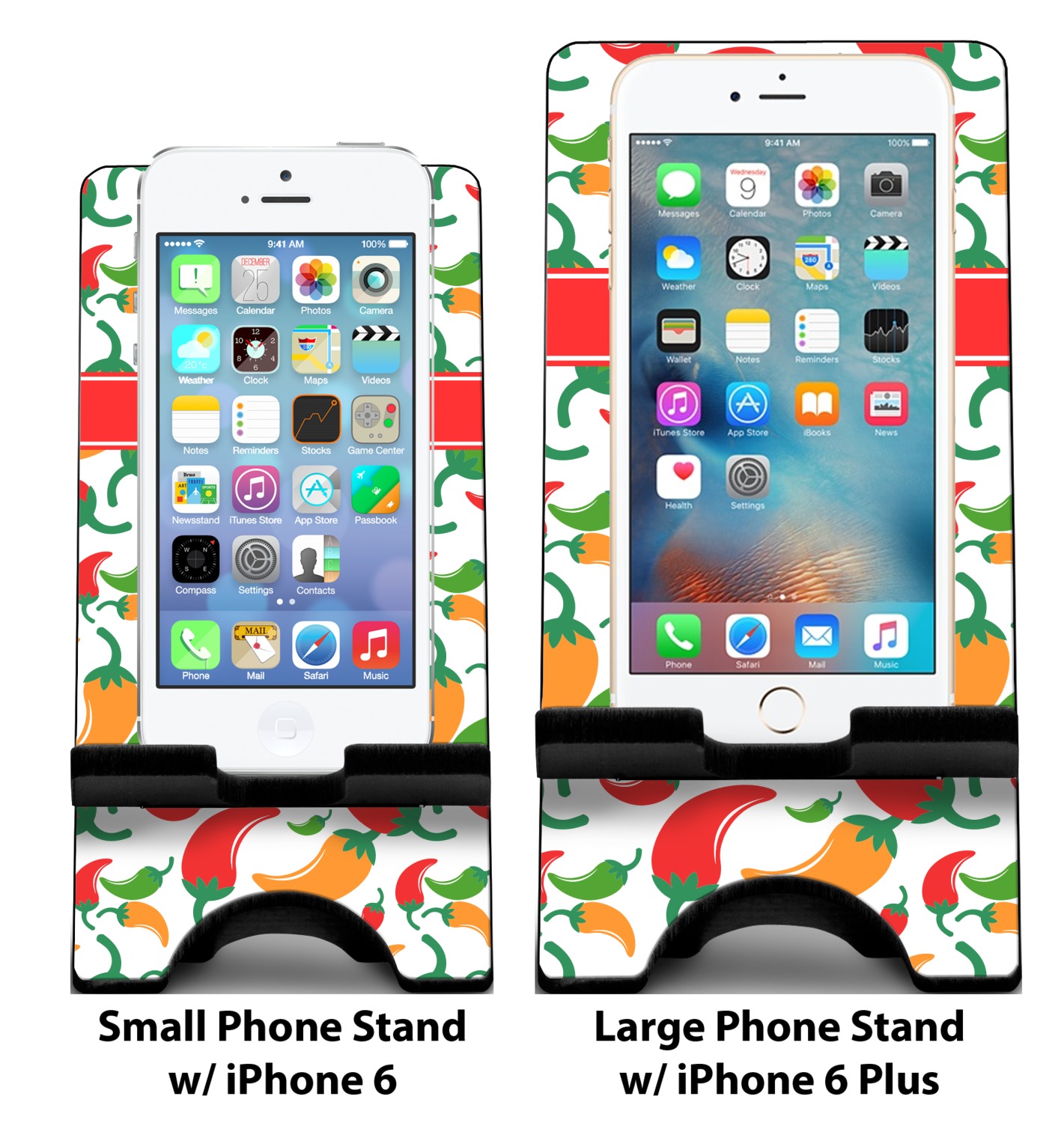 To meet your needs, we offer four variations of this IPhone stand. The backboard of the first version is shaped as a plain, yet sleek rectangle, and is available in two sizes. Our smaller size is approximately 4 by 3.25 by 7 inches, while the larger model is 4 by 3.77 by 8.5 inches. Alongside this model, we also provide you with a more decorative option. The upper part of our second version features a curved edge, for a classy, suave appearance. This phone holder is also sold in two sizes: a smaller version, which is 4 by 3.25 by 7 inches, and our larger model, which is 4 by 3.77 by 8.5 inches. Both models will support large phones, but the larger model is better if you wish to proudly display your personalized design.