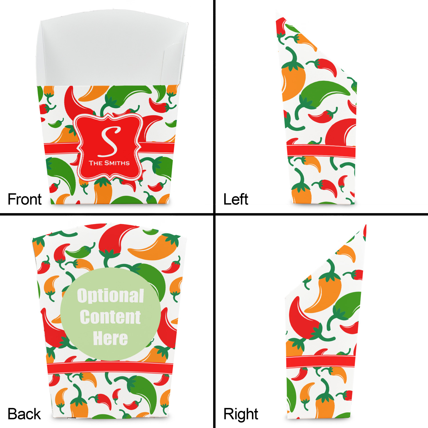 These favor boxes are printed in full color on quality cardstock - so coordinating the french fry favor boxes to match your event's themes or colors should be a breeze. You can upload your own design including artwork, logos or photos