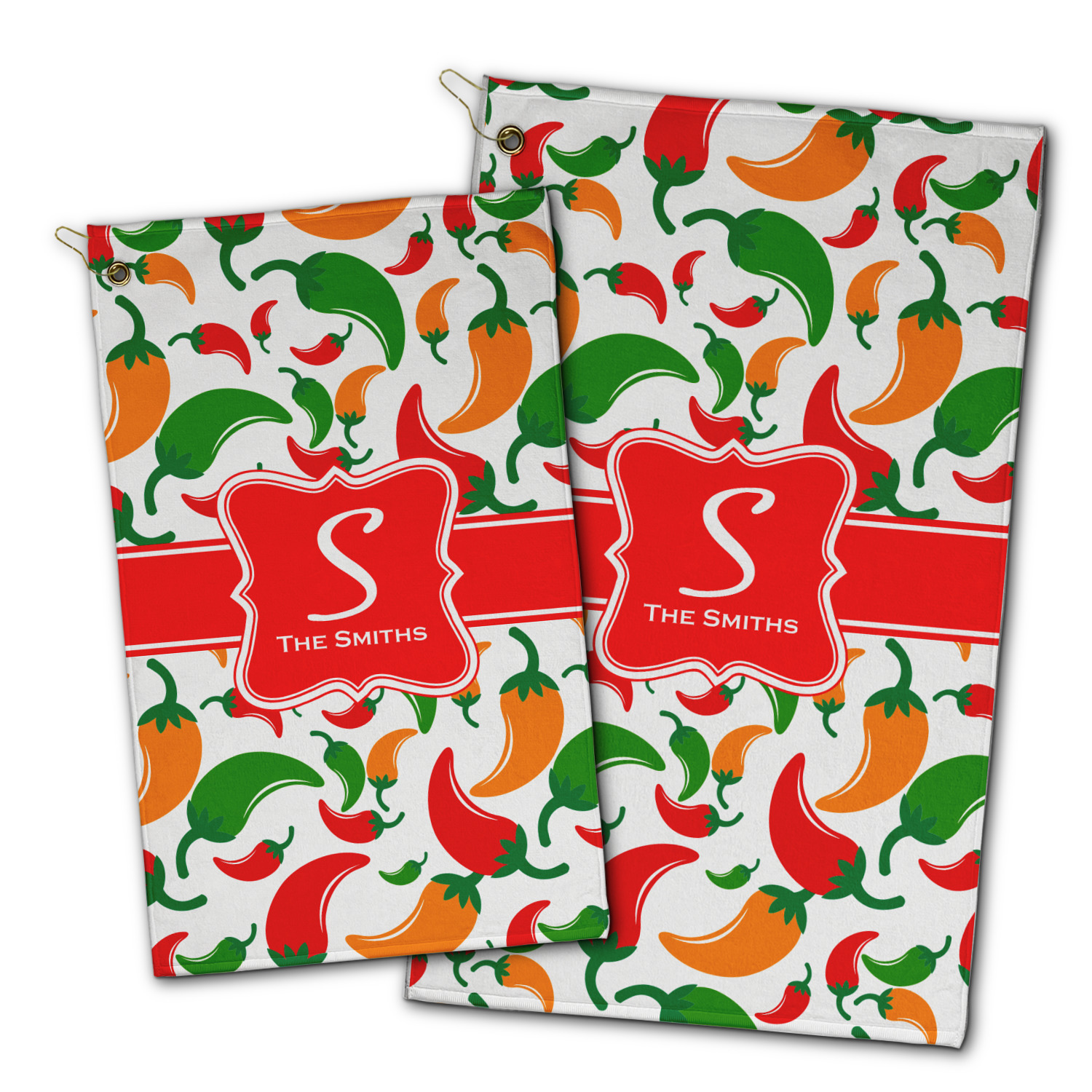 These golf towels are come in 2 sizes: Small: 11"x 18" and Large: 15" x 25" in dimension.
