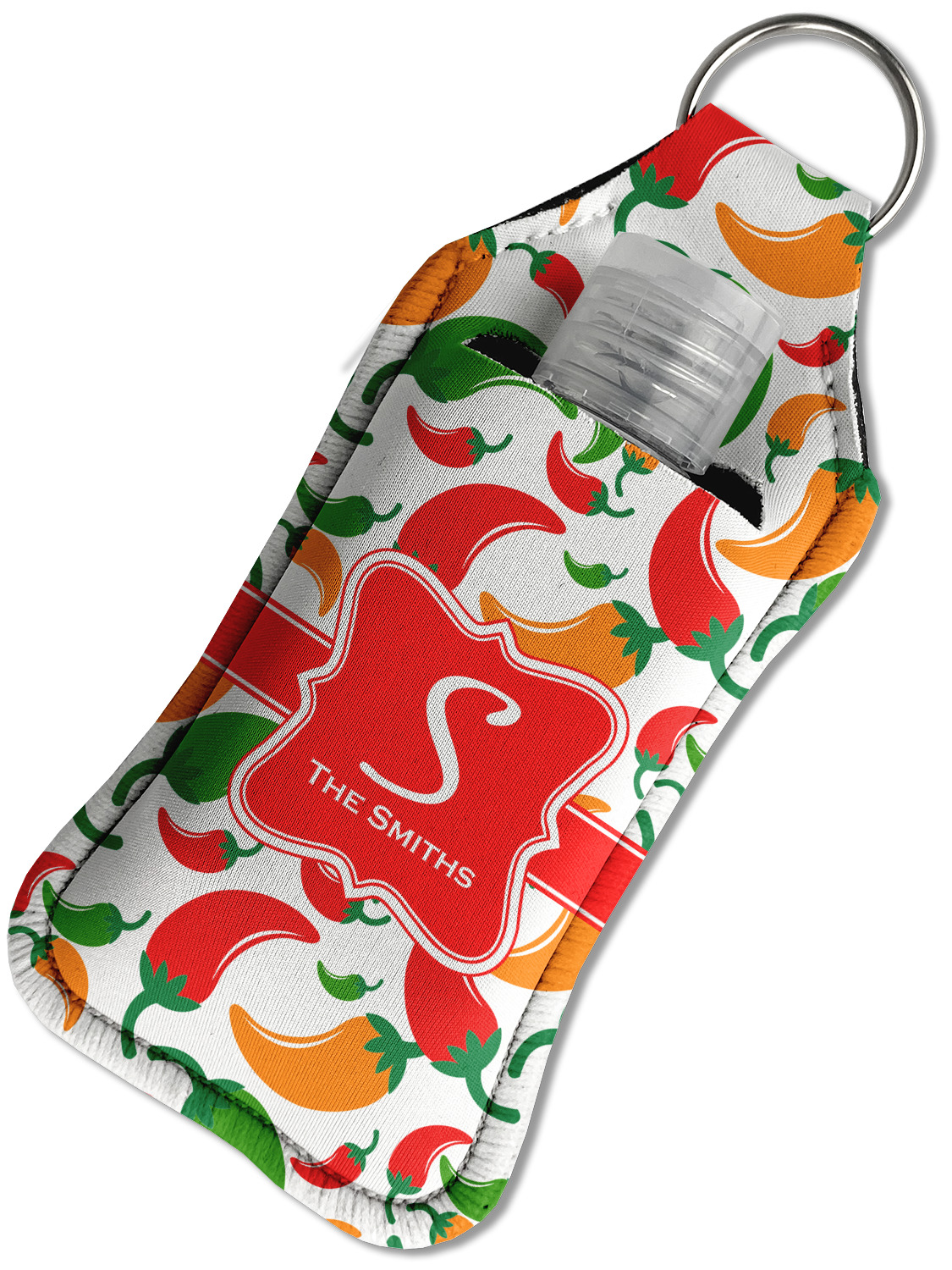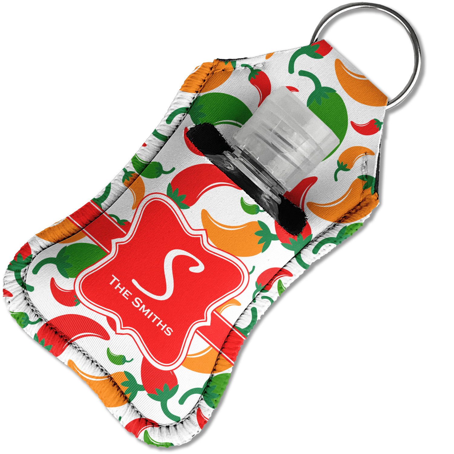 Each hand sanitizer holder comes with its own empty travel-sized, refillable hand sanitizer sure to fit snug in your customized sanitizer case! Our hand sanitizer cases are a durable, yet soft neoprene material sure to last any daily activities or travel agenda. Customize and personalize a hand sanitizer bottle holder with one of our two sizes - small (4.25" x 2.25") or large (5.5" x 2.5"). Each travel sanitizer holder comes with a keyring for attachment on bags, keys, or more!
