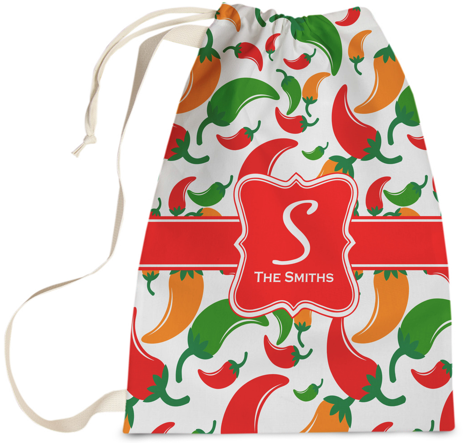 Carry your laundry in style with these customized laundry bags. Available in two sizes, featuring a natural colored woven strap and a cinch cord, these bags hold a lot of clothes or anything else you want to fit in them.